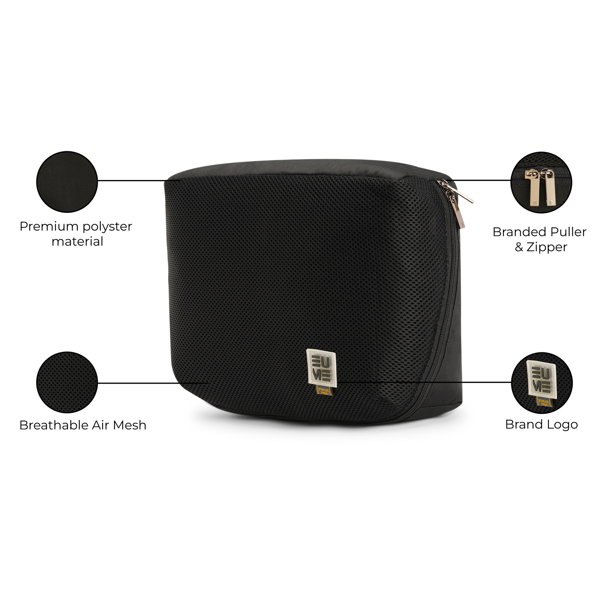 HIGH QUALITY MATERIAL - Eume storage pods are crafted from premium polyester and have a two-way zip closure for xlarge pod and one- way zip closure for large and medium pods. The upper portion of the Eume storage pods is made of extremely breathable honeycomb mesh fabric for maximum breathability.