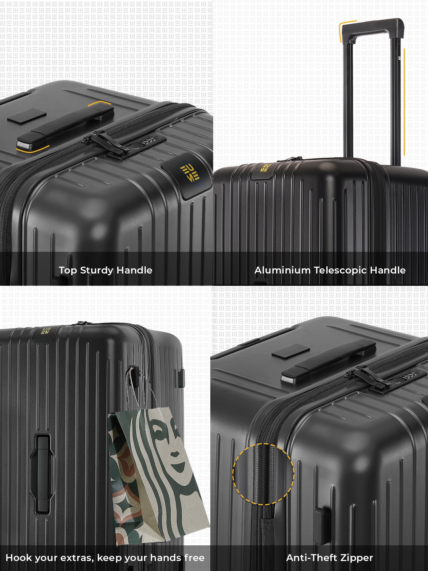 - Both luggages are equipped with aluminium telescopic handles, retractable carry handles, TSA-approved number locks, water-resistant interior lining, and customisation options, delivering a secure, smooth, and personalised travel experience across every journey.