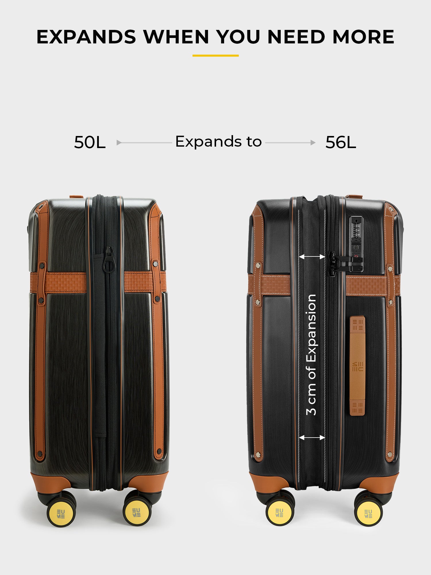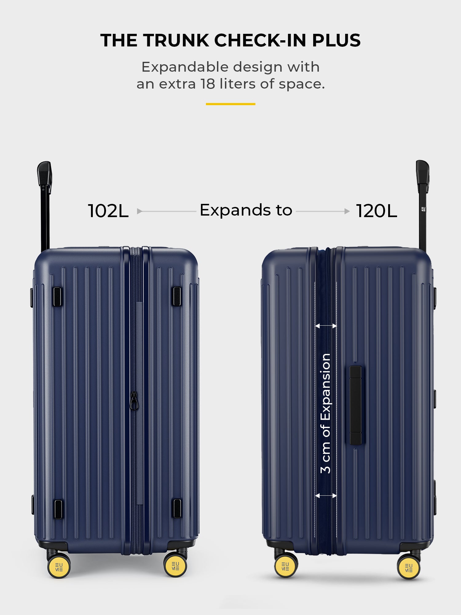 - For flexible packing, the cabin luggage features an expansion system that increases capacity from 50 litres to 56 litres, while the Classic Check-In Medium provides spacious dual-compartment storage with a compression pad, spill-proof pockets, and organised sections for longer trips. Smooth mobility is ensured through EUME SilentRun™ 360 degree spinner wheels on the cabin and SilentRun Pro Hinomoto-powered double wheels on the check-in size.
