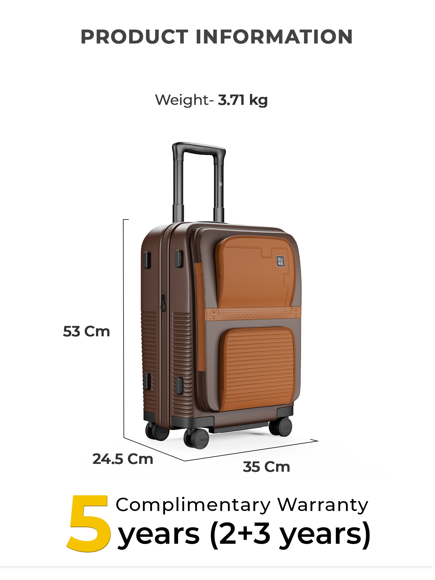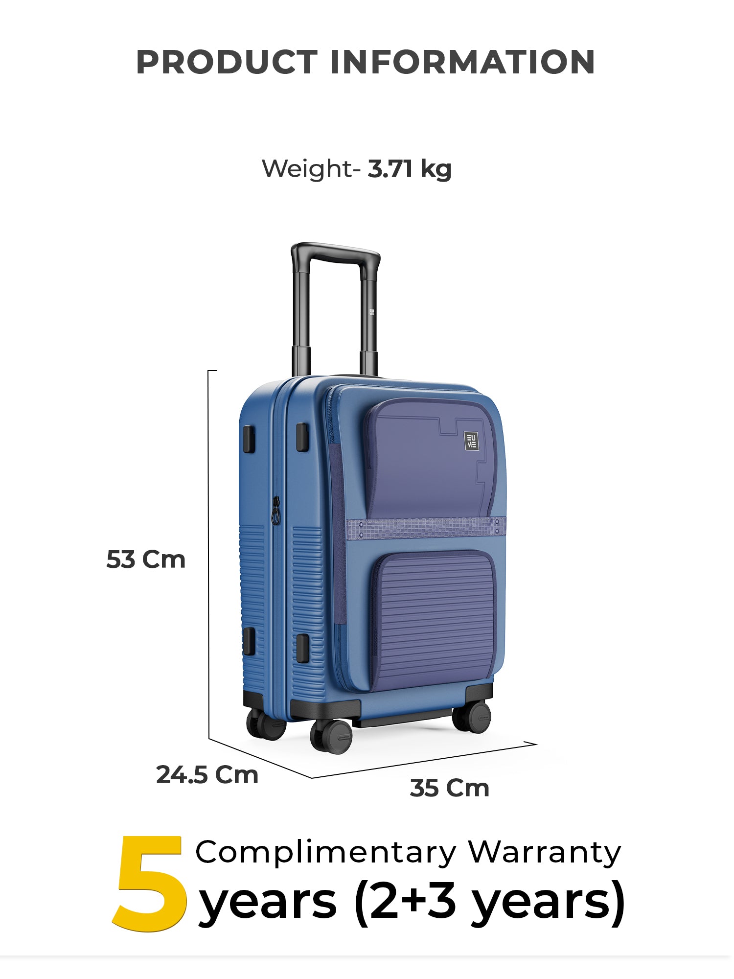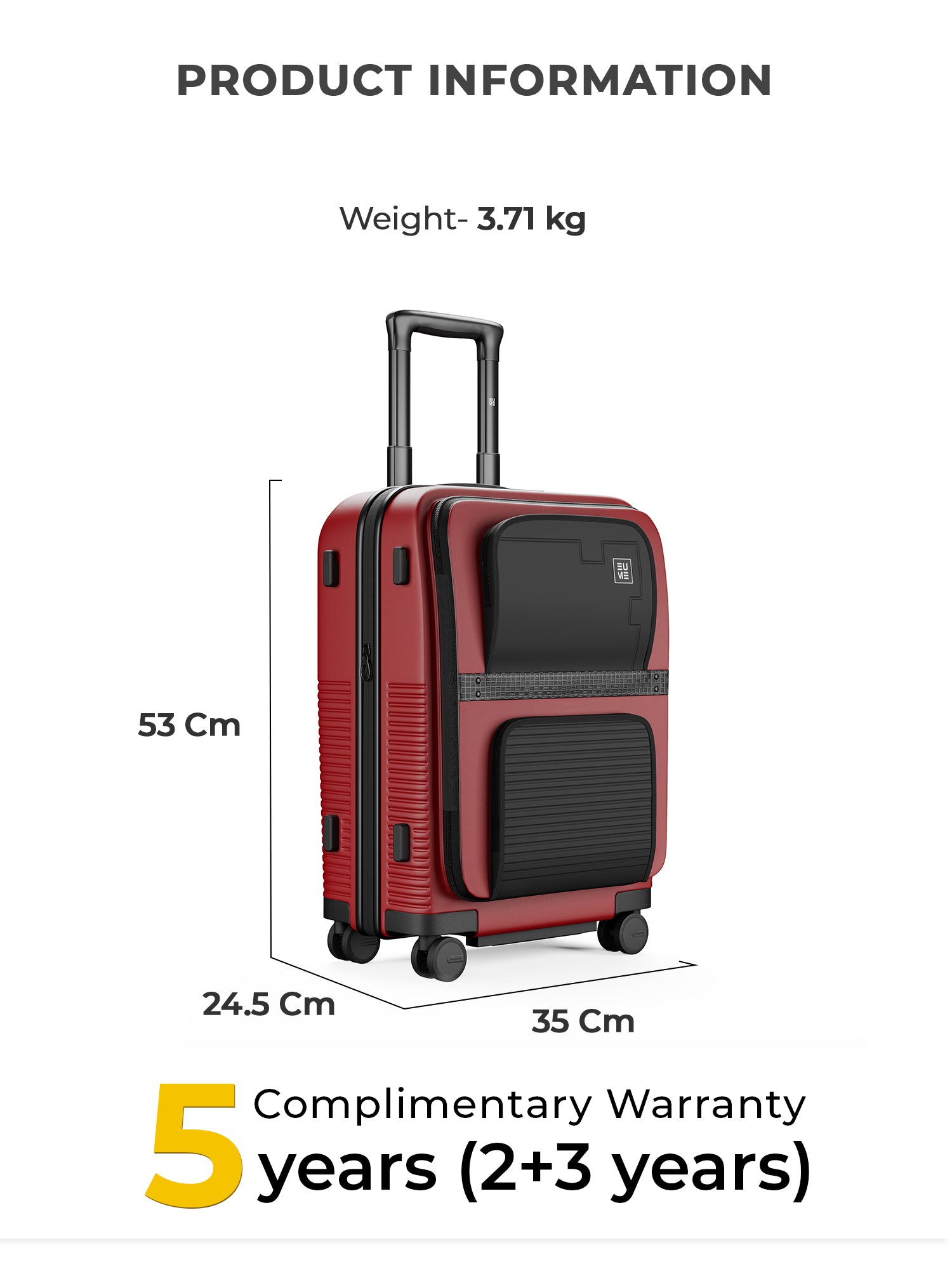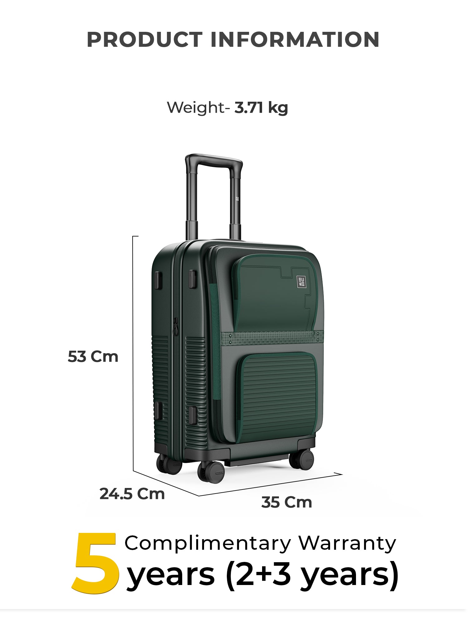 Travel Luggage: Comes with a 5-year extended warranty, with 2 years complimentary and an additional 3 years upon registration on our warranty page via https://eumeworld.com/pages/warranty.