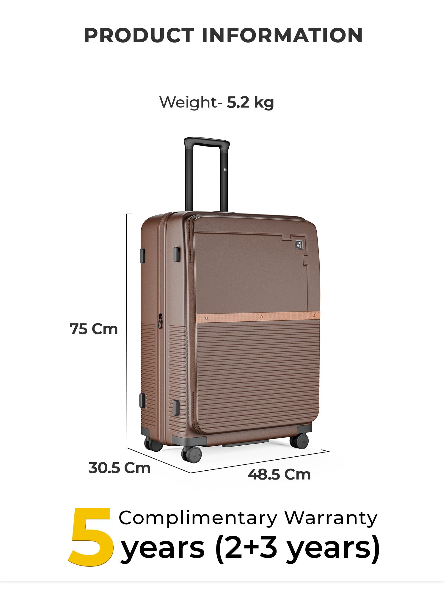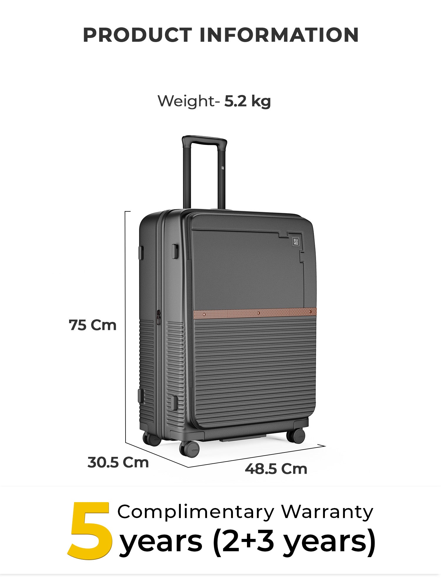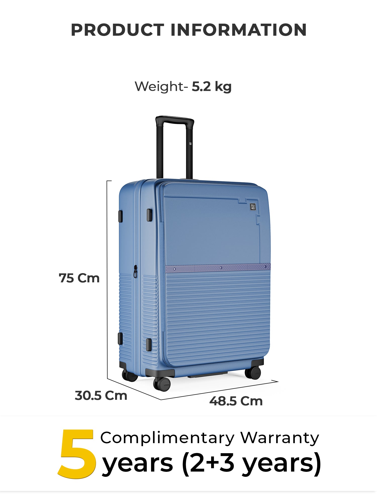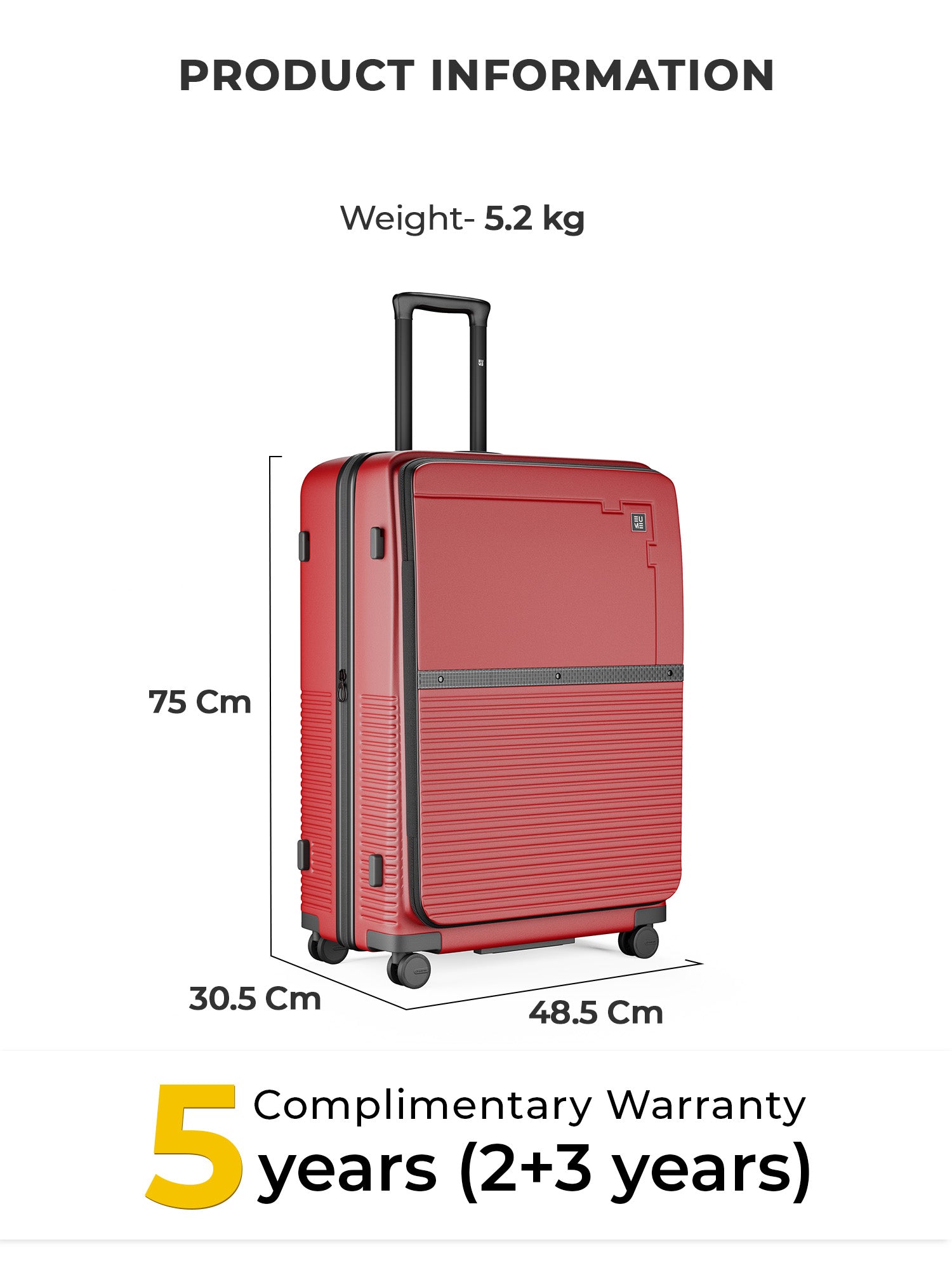 Travel Luggage: Comes with a 5-year extended warranty, with 2 years complimentary and an additional 3 years upon registration on our warranty page via https://eumeworld.com/pages/warranty.