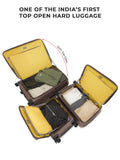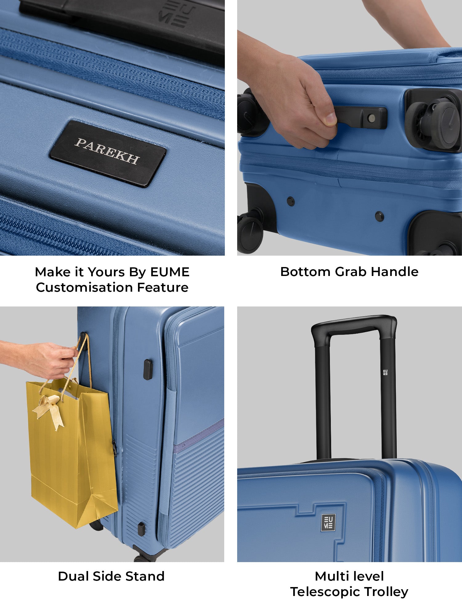 - The EUME Aero Top-Open Hard Shell Luggage Set is built for modern travellers who value smart packing, durability, and everyday ease. Available in 20 inch cabin, 24 inch medium, and 28 inch large, Aero features an innovative 100 percent top-opening design that allows full access to your belongings even in compact hotel rooms and small living spaces. This makes it one of India’s leading top-open hard shell luggage solutions.