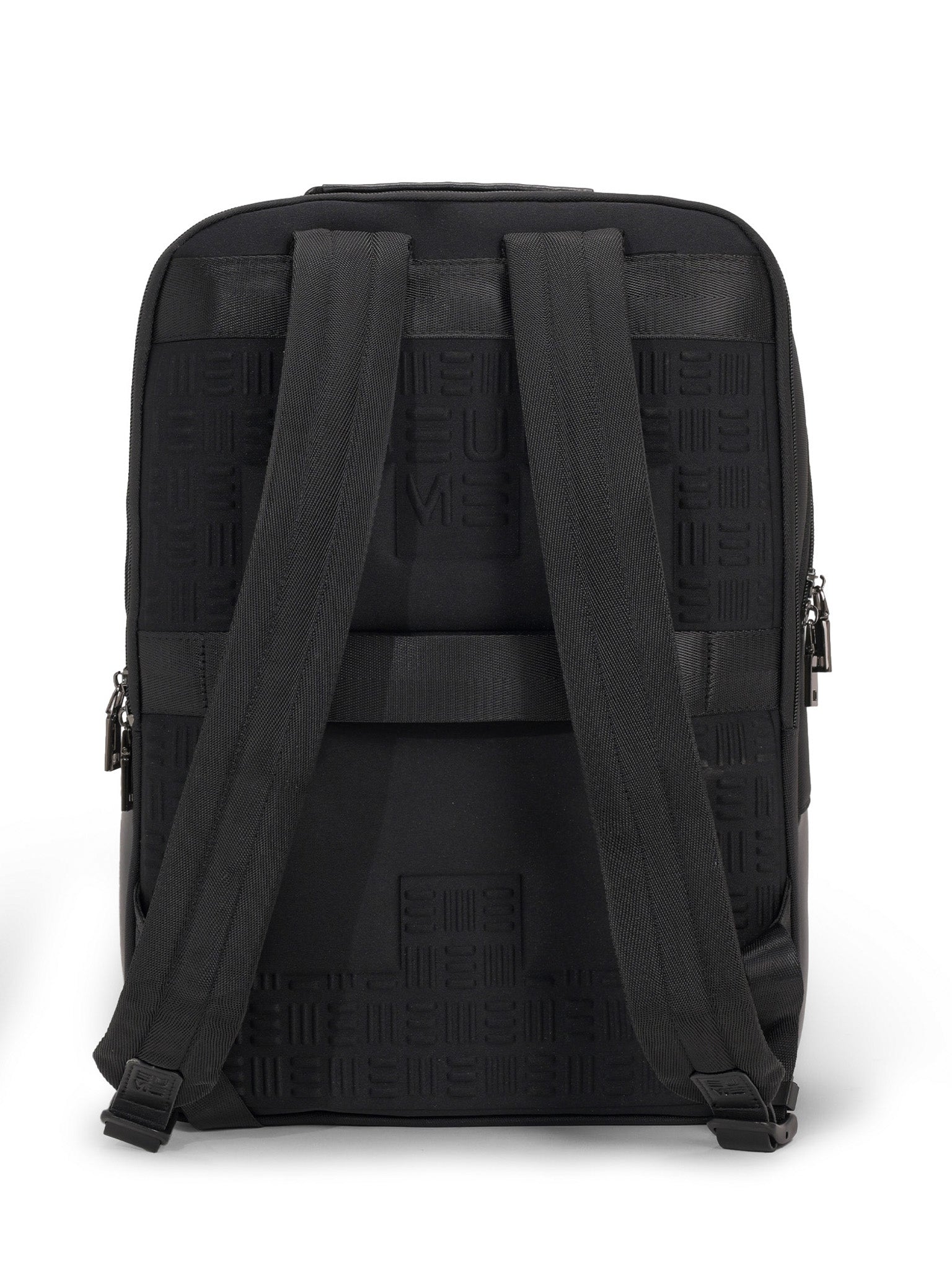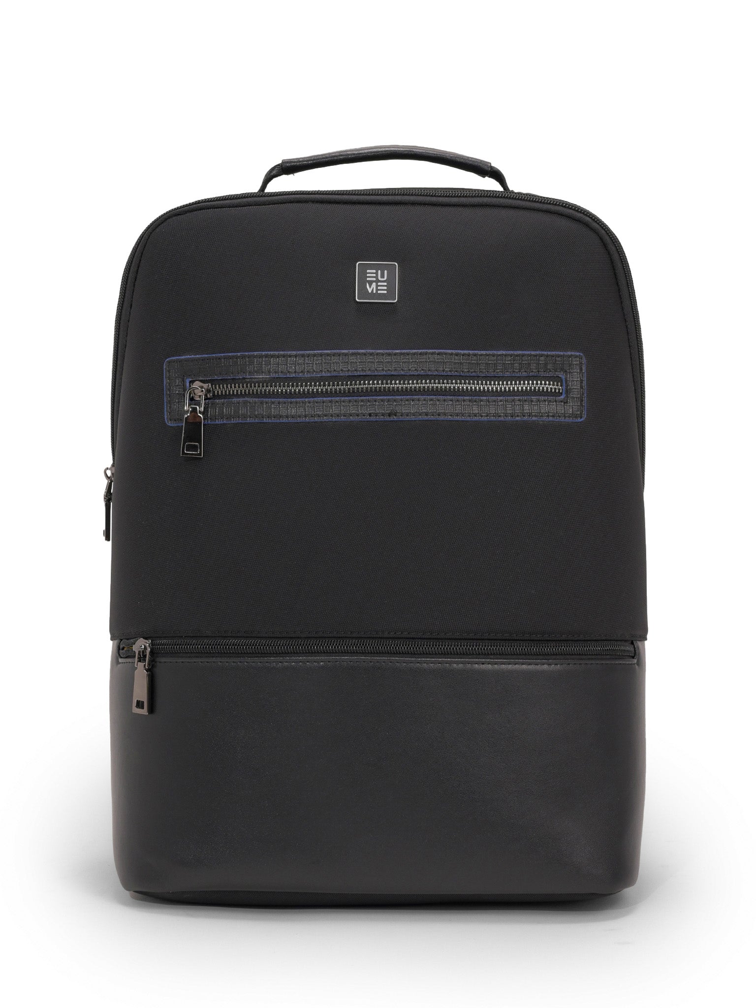 - ALPINE by EUME is a premium backpack crafted from waterproof nylon and high-quality microfiber, designed for professionals who value sleek functionality. The bag features a dual-compartment structure, complemented by two easy-access front pockets. The rear compartment is lined with soft fleece padding to protect your laptop up to 16 inches, along with space for a tablet.