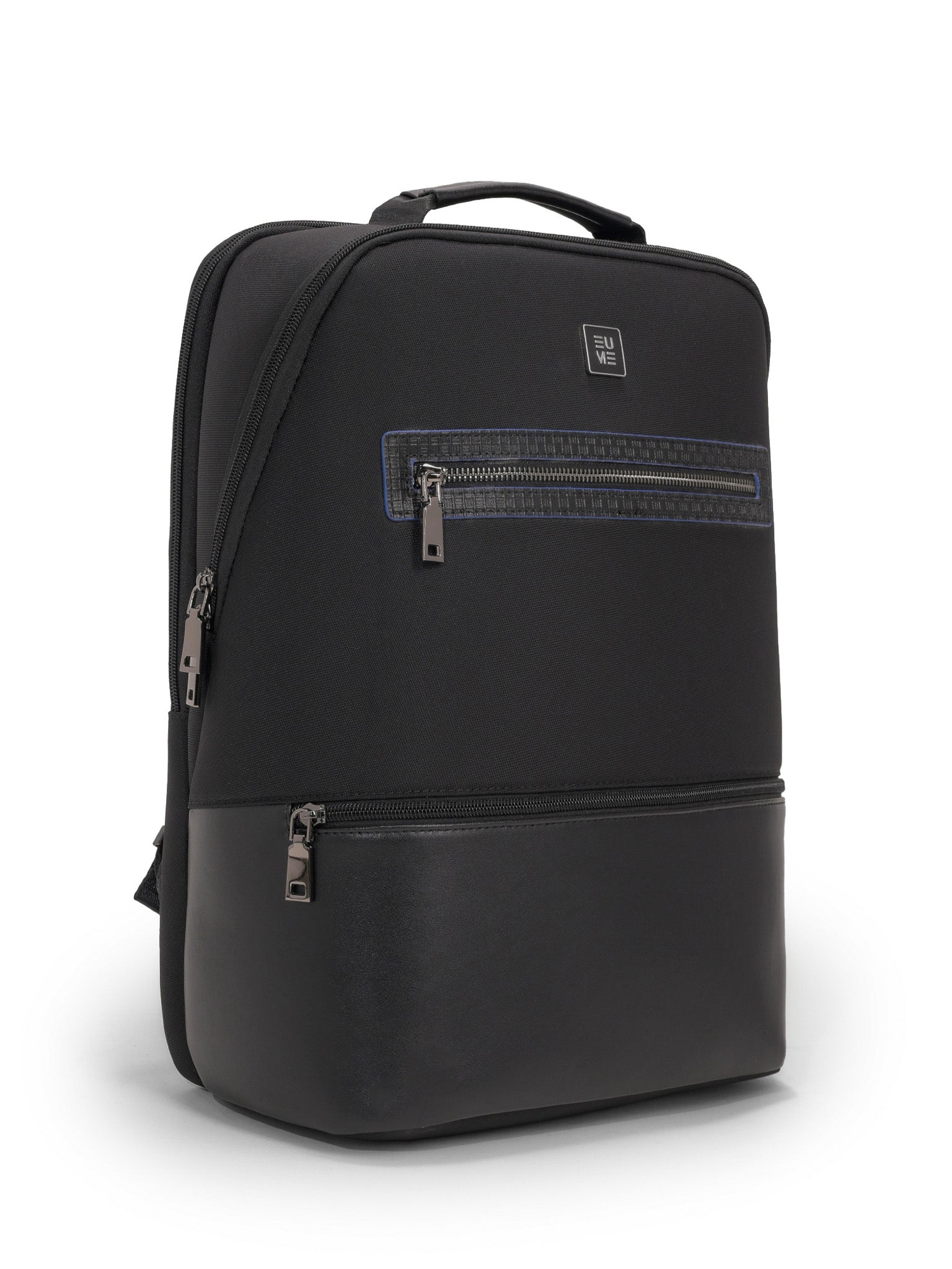 ALPINE by EUME is a premium backpack crafted from waterproof nylon and high-quality microfiber, designed for professionals who value sleek functionality. The bag features a dual-compartment structure, complemented by two easy-access front pockets. The rear compartment is lined with soft fleece padding to protect your laptop up to 16 inches, along with space for a tablet.