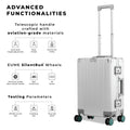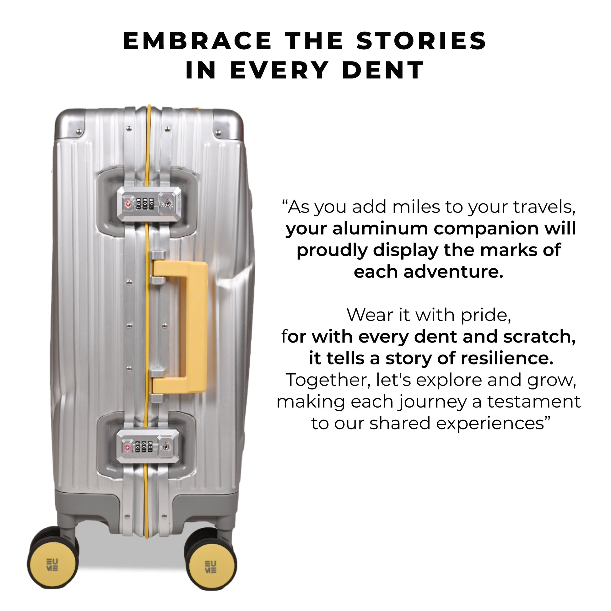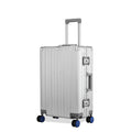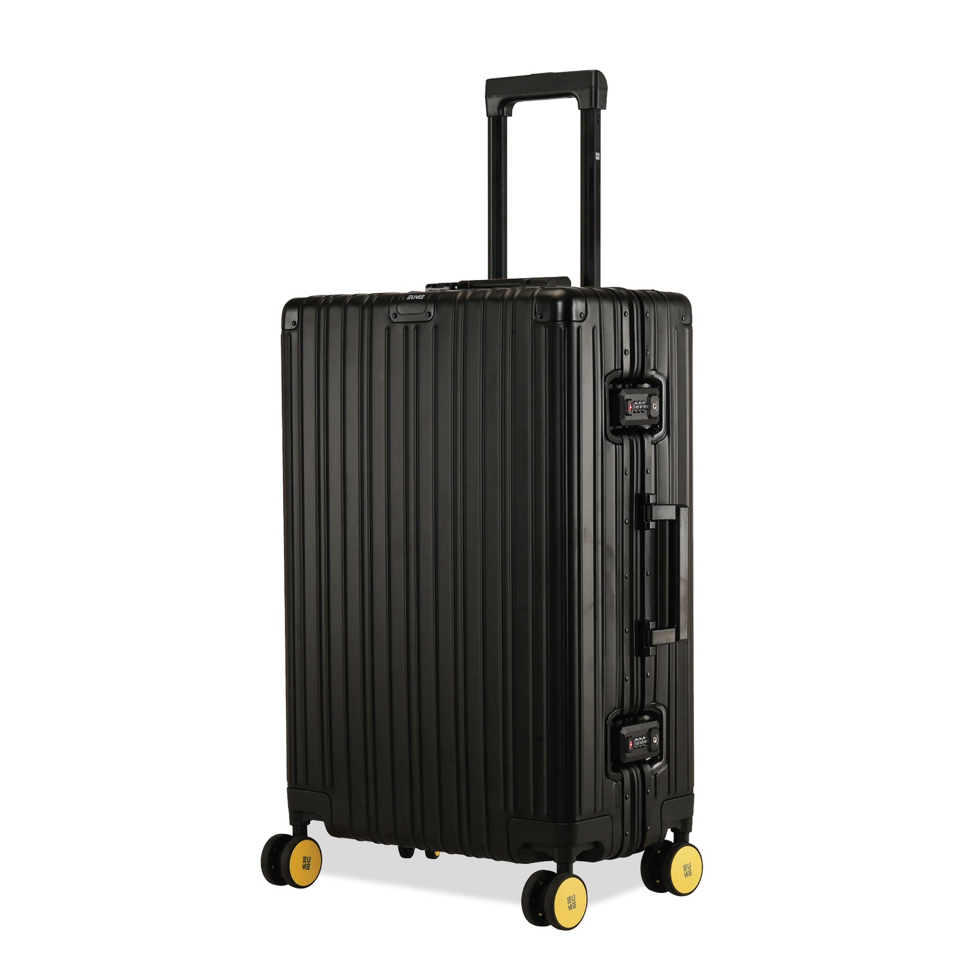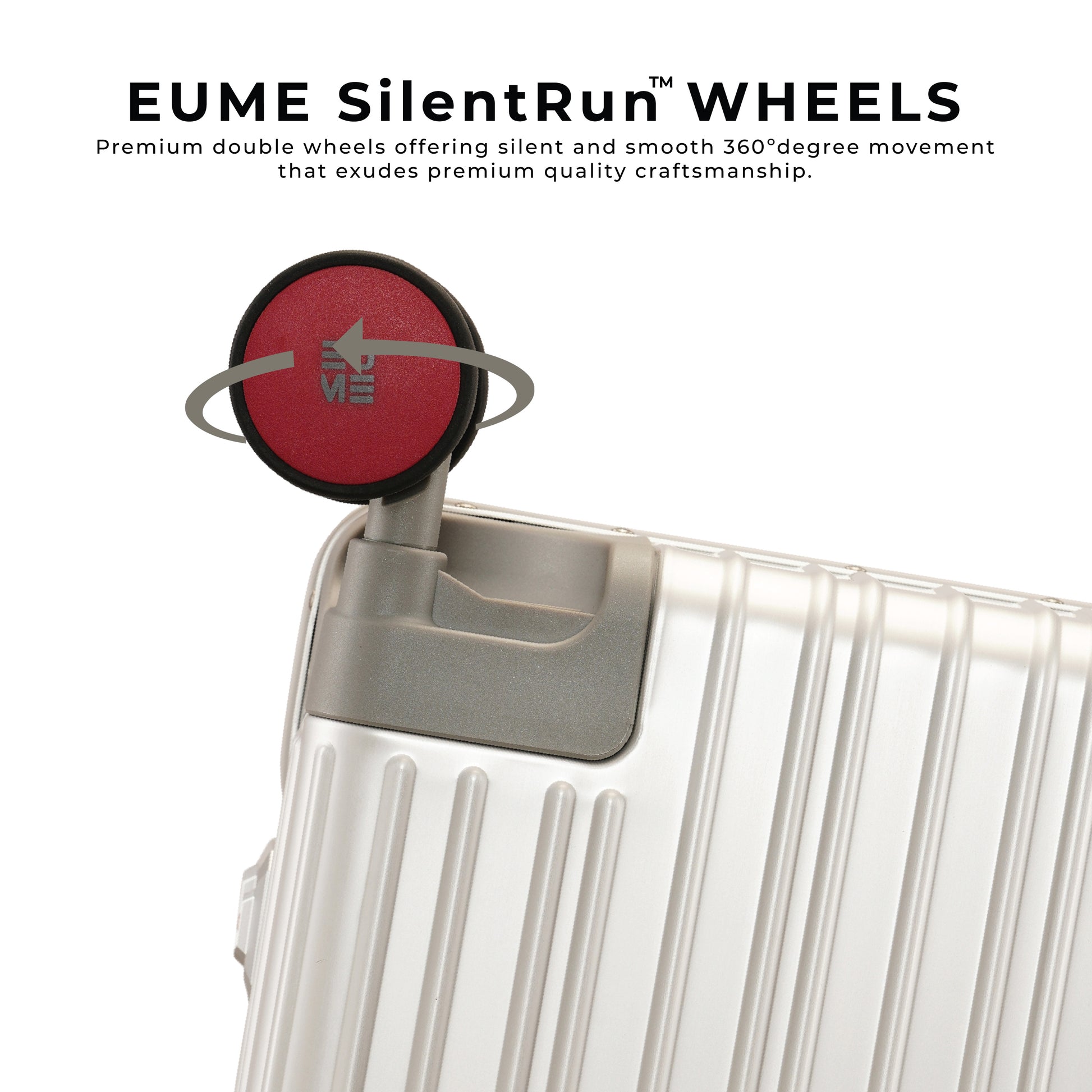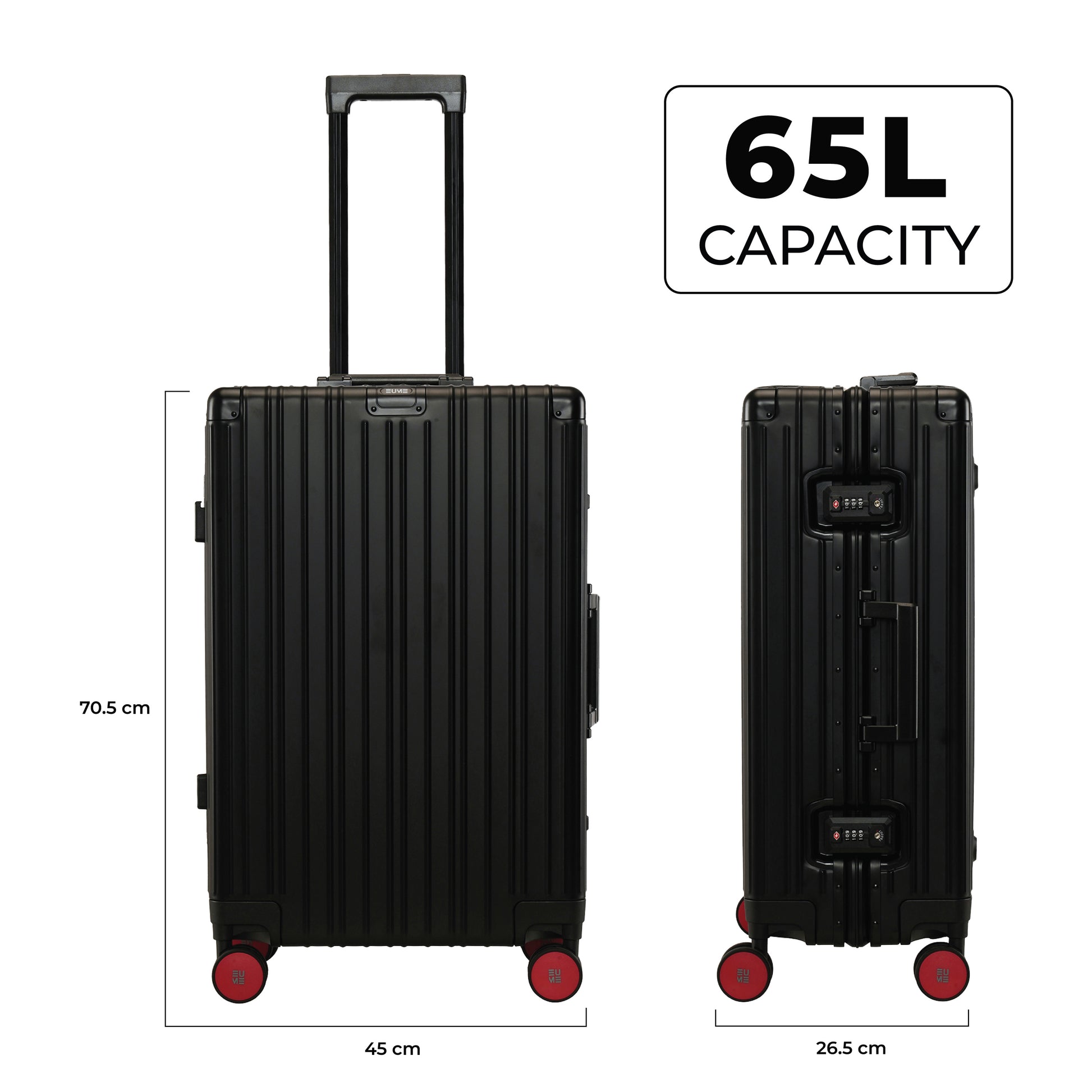 - The EUME Aluminium 20-inch cabin and 24- Inch check-in medium trolley bags for travel are meticulously crafted from 100% high-end anodized aluminium for durability and a stylish look. Equipped with 8 SilentRun 360-degree double wheels and a high-end steering system, our cabin trolley bags ensure sturdy and effortless movement. Discover the timeless elegance of Our Luggage Trolley, designed for longevity and perfect for short trips, fitting comfortably in most airline overhead compartments.