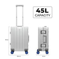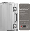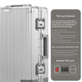 - Experience hassle-free security checks with our Aluminium TSA Lock cabin luggage. Featuring two TSA-approved press-button combination locks, your belongings stay safe during airline inspections. The Travel Bag trolley design includes two durable handles capable of lifting weights up to 10kg each for Cabin and 15kg for check-in medium, ensuring reliable handling.