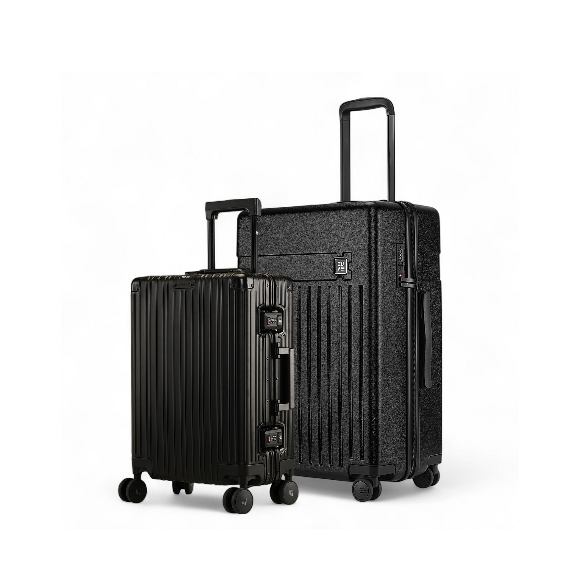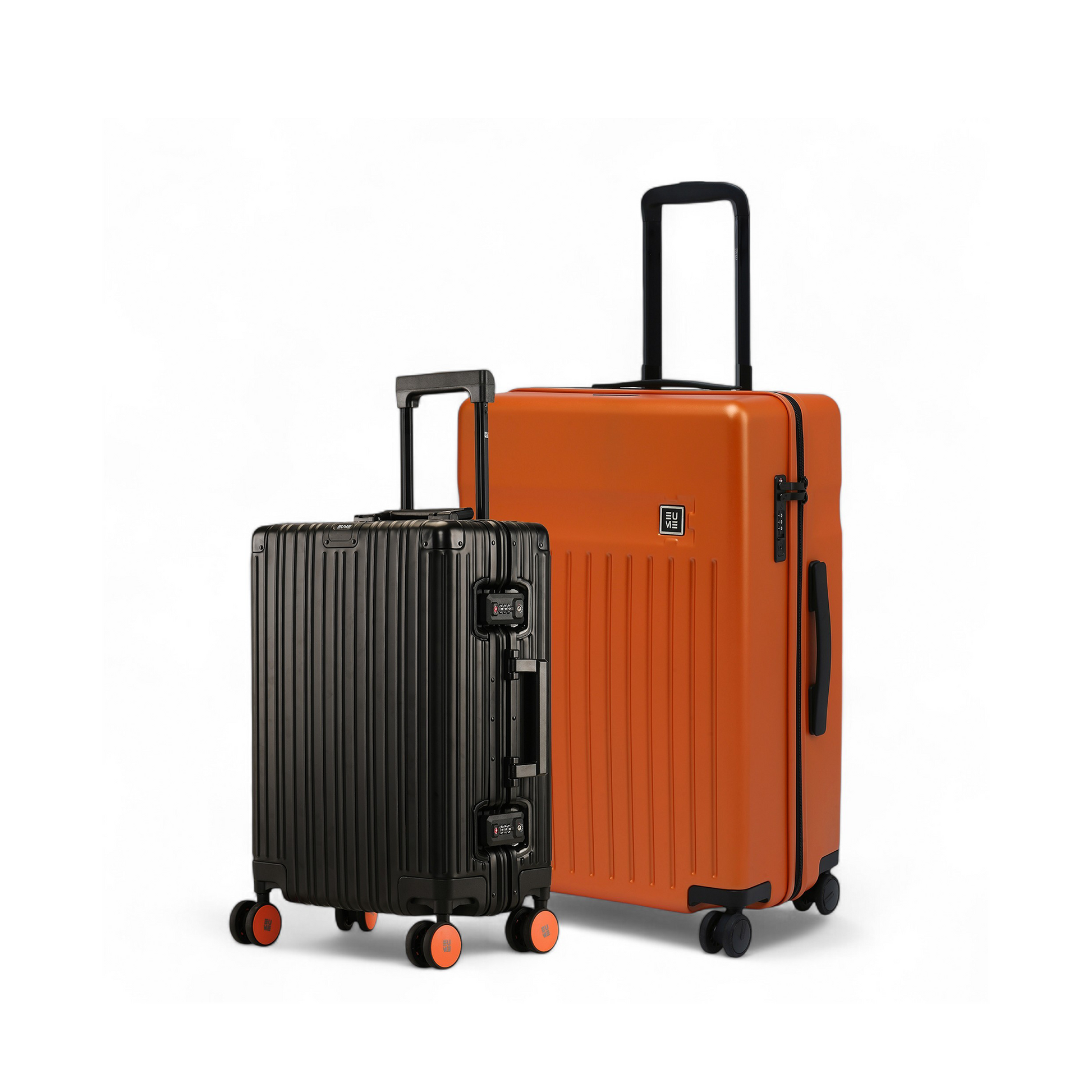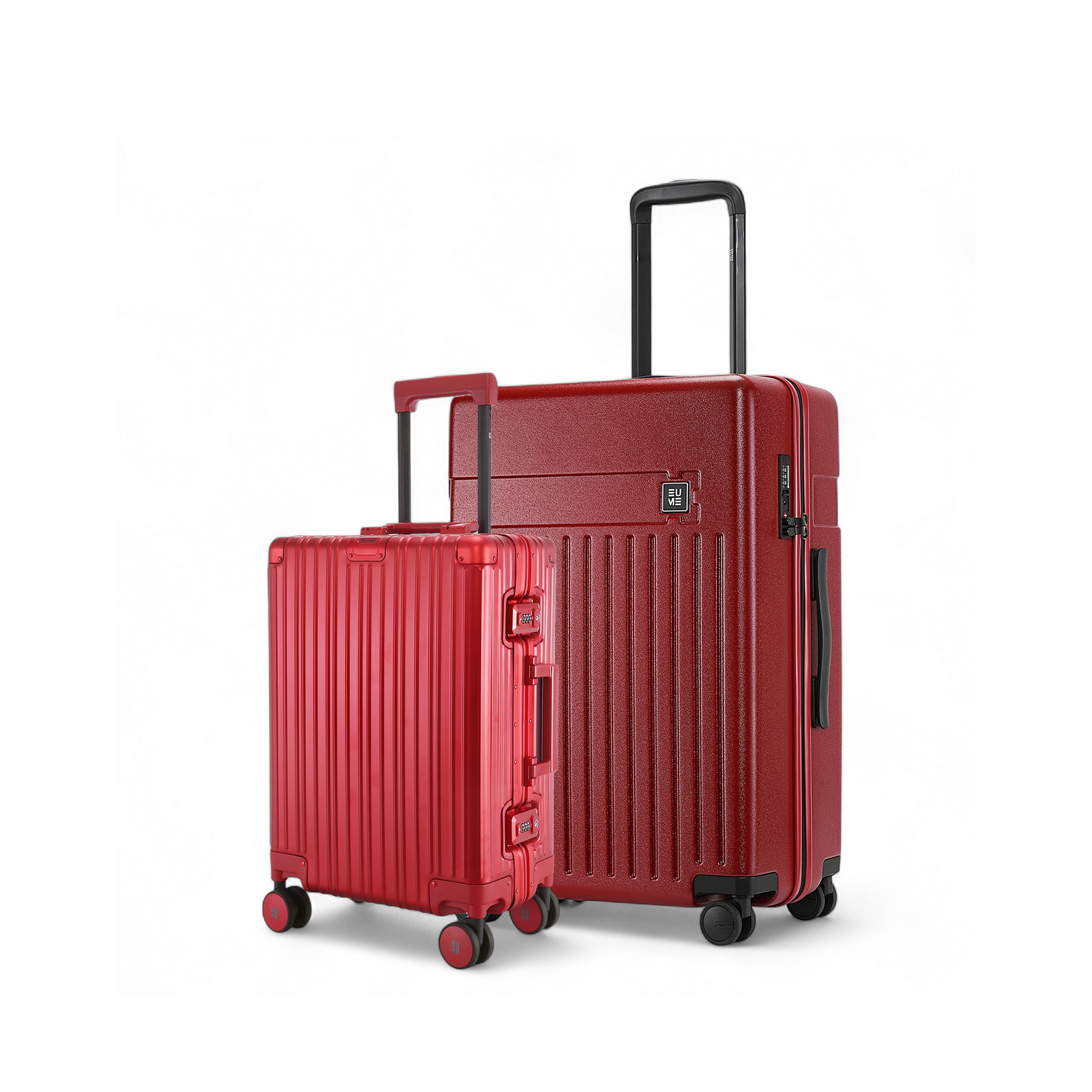 - The EUME Aluminium 20-inch cabin and Classic check-in medium trolley bags for travel are meticulously crafted from 100% high-end anodized aluminium for durability and a stylish look. Equipped with 8 SilentRun 360-degree double wheels and a high-end steering system, our cabin trolley bags ensure sturdy and effortless movement. Discover the timeless elegance of Our Luggage Trolley, designed for longevity and perfect for short trips, fitting comfortably in most airline overhead compartments.
