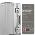 - Experience hassle-free security checks with our Aluminium TSA Lock cabin luggage. Featuring two TSA-approved press-button combination locks, your belongings stay safe during airline inspections. The Travel Bag trolley design includes two durable handles capable of lifting weights up to 10kg each for Cabin and 15kg for check-in medium, ensuring reliable handling.