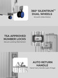 - Experience hassle-free security checks with our Aluminium TSA Lock cabin luggage. Featuring two TSA-approved press-button combination locks, your belongings stay safe during airline inspections. The Travel Bag trolley design includes two durable handles capable of lifting weights up to 10kg each for Cabin and 15kg for check-in medium, ensuring reliable handling.