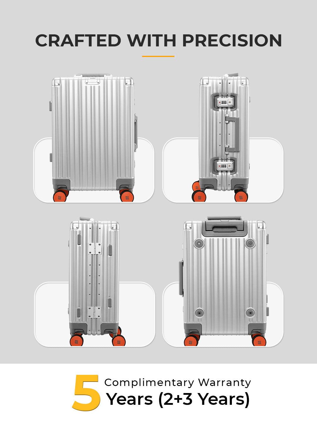 - The Eume Aluminium Cabin Luggage is backed by a 5-Year Warranty by EUME against all manufacturing defects. This warranty is broken into a complimentary 2-year warranty by EUME. To enjoy an extended 3 years of warranty for free, please register your product within 1 month of purchase.
