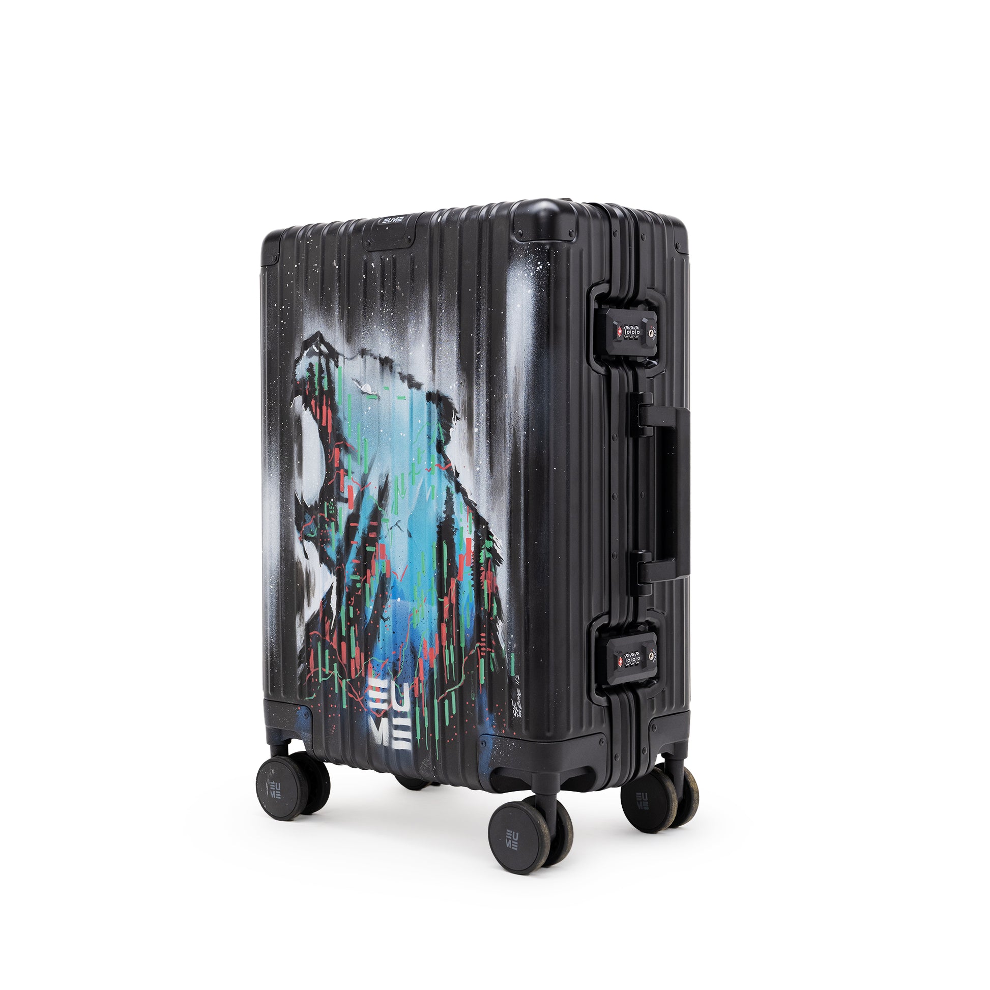 His two great passions, the untamed beauty of wildlife and the resilient rhythm of the stock market, became the soul of this collection. The Untamed Index – ARK Edition is not just imagined, it is hand-painted on our aluminium bags, making every piece a canvas of gratitude.