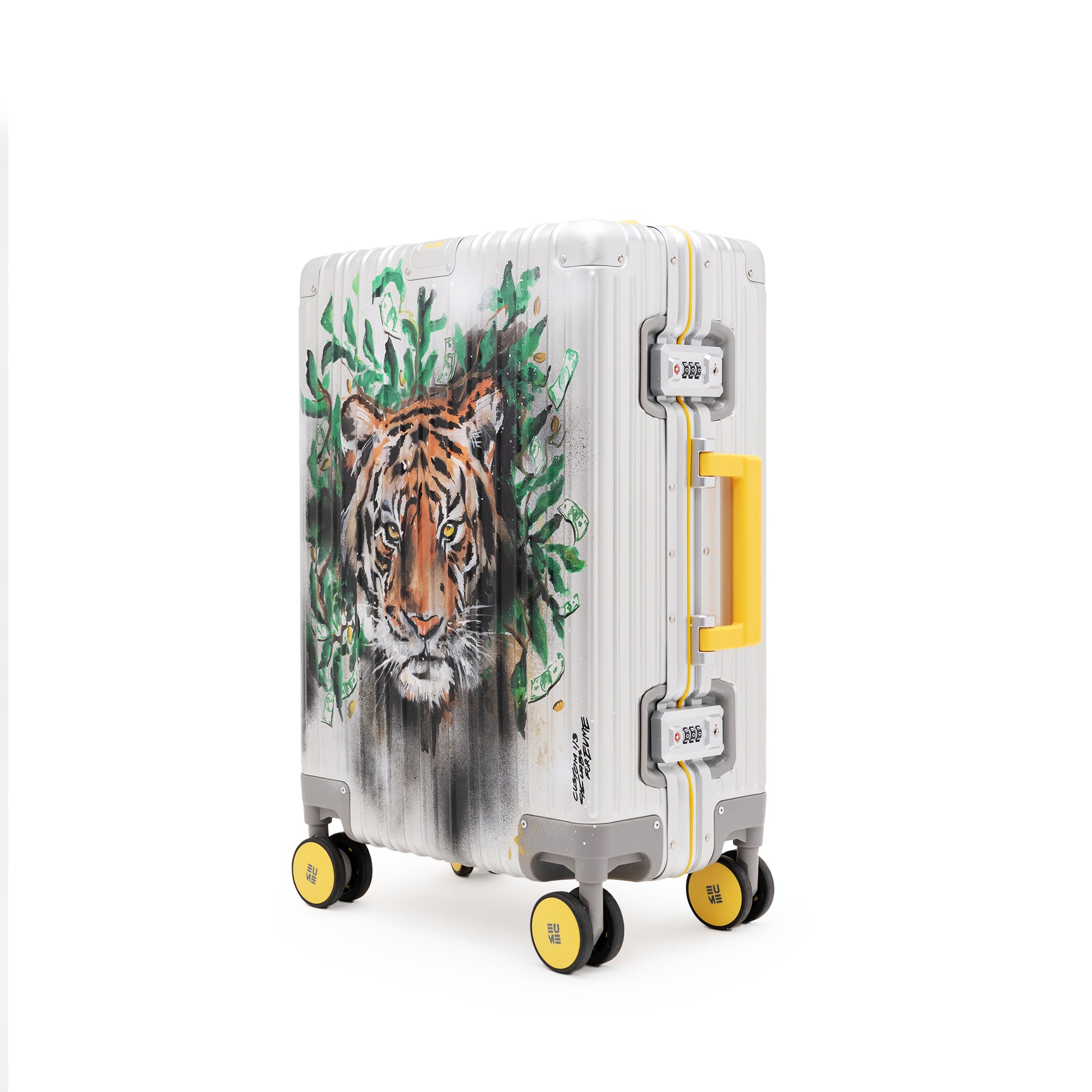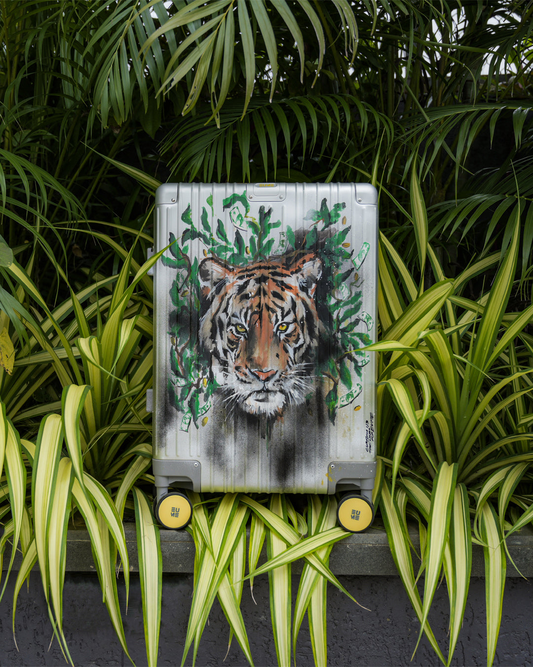 His two great passions, the untamed beauty of wildlife and the resilient rhythm of the stock market, became the soul of this collection. The Untamed Index – ARK Edition is not just imagined, it is hand-painted on our aluminium bags, making every piece a canvas of gratitude.