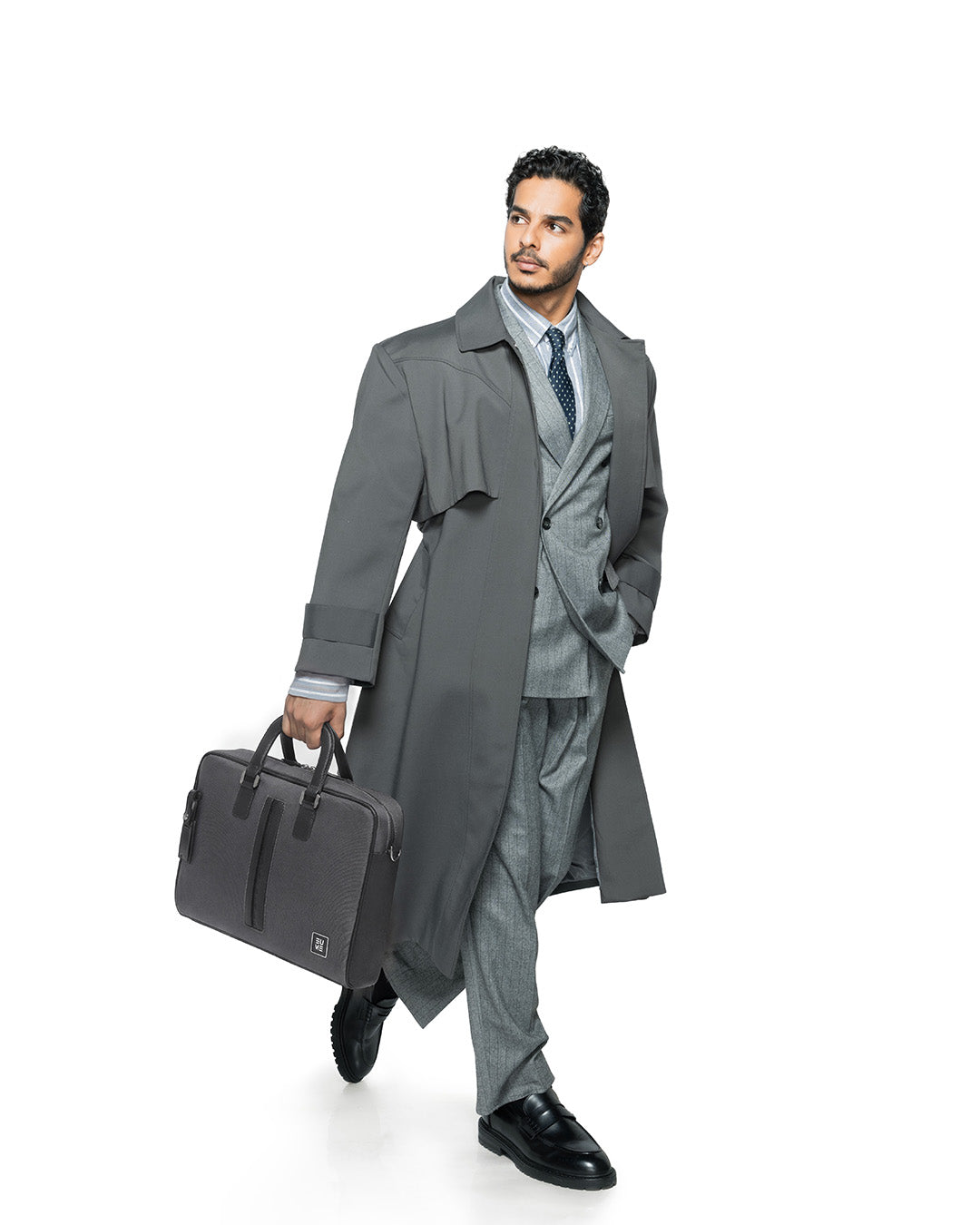 - The bag features structured briefcase-style hand-carry handles made from cushioned vegan leather, delivering both comfort and a refined appearance.