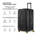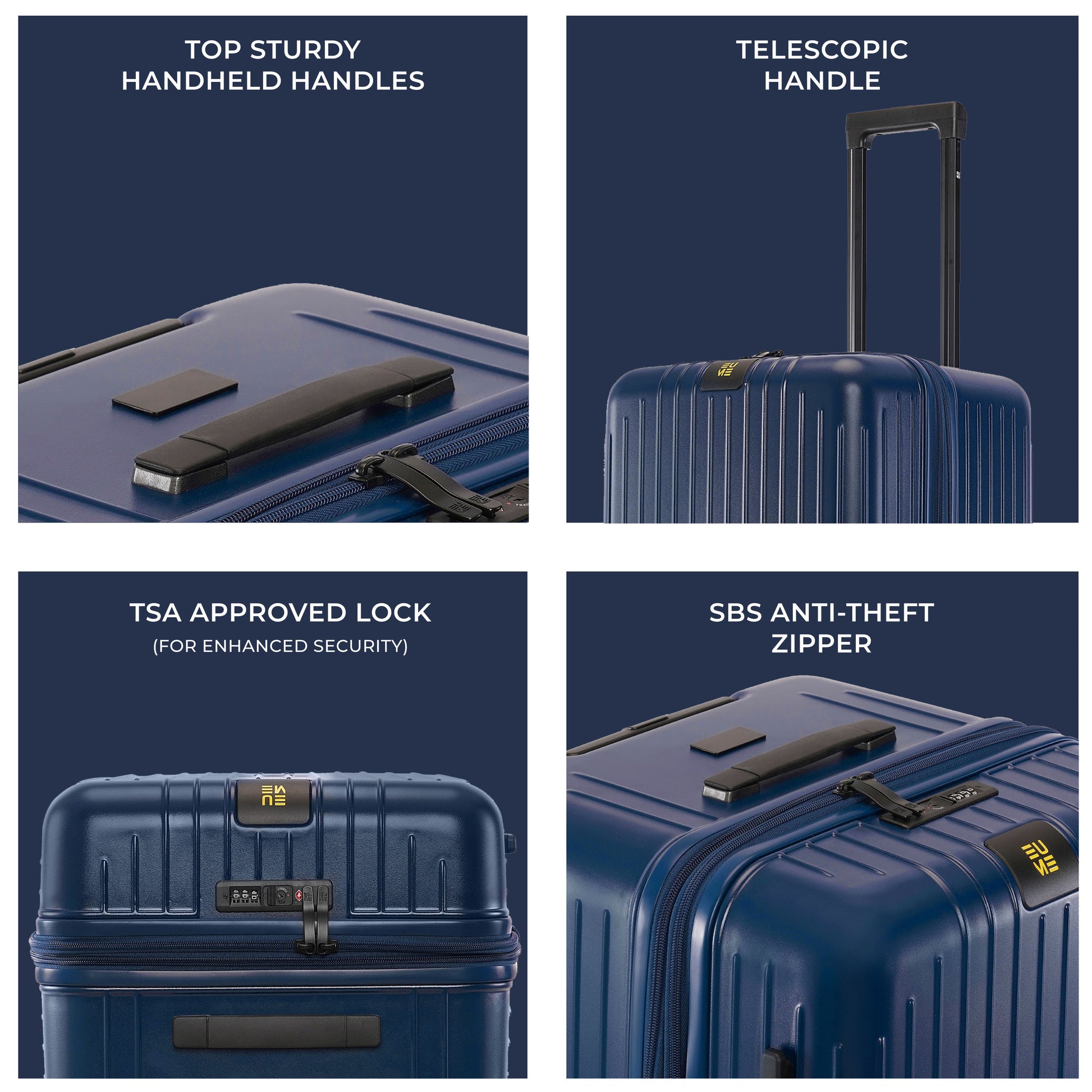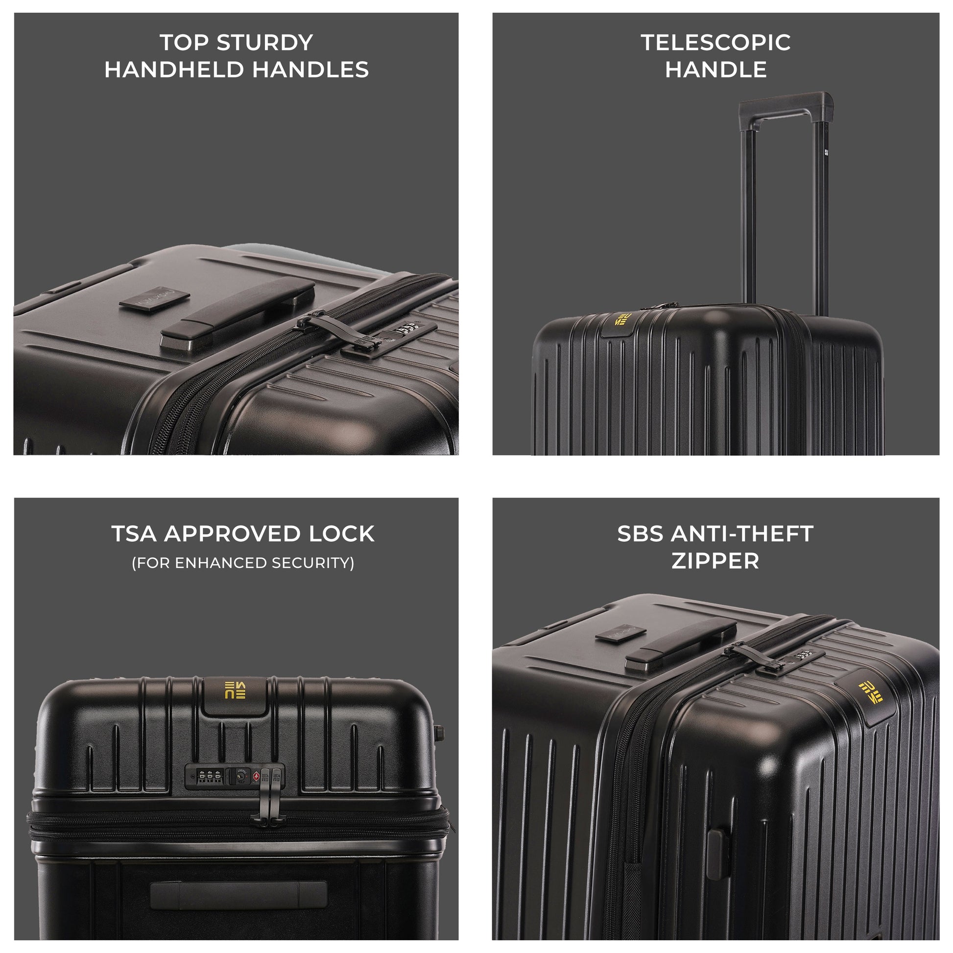 - Security is enhanced by an SBS antitheft zipper mechanism and TSA-approved combination locks, which include A and C type charging slots and a power bank pocket with internal slots. The silent-run pro double wheels, powered by Hinomoto Japanese technology, ensure smooth and quiet handling across any terrain. The luggage features a front compartment that also locks with a TSA-approved combination lock. The compartment has a dedicated cushioned laptop section that fits laptops up to 16 inches, and a section for an iPad. It also has pockets for all your electronic gadgets, passports, and other small essentials, and a retractable and detachable key chain holder. The compartment is made from premium nylon and EVA to protect the laptop and other electronic gadgets during travel, providing easy access to the front section on the go.