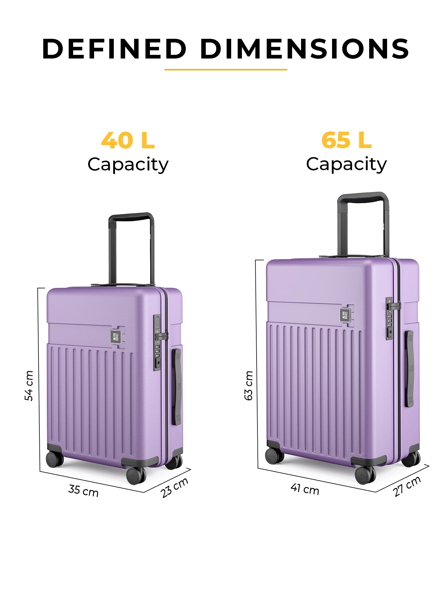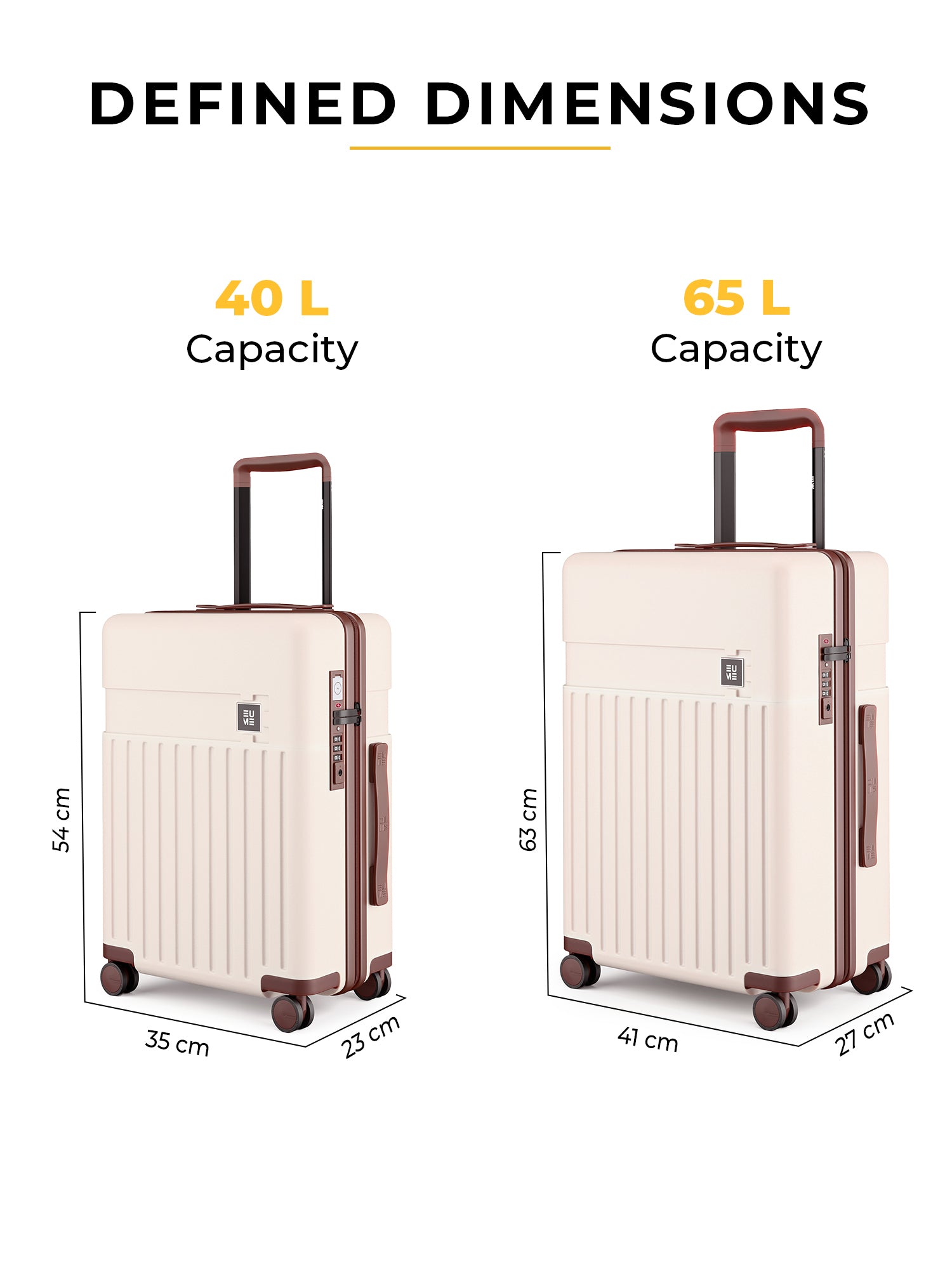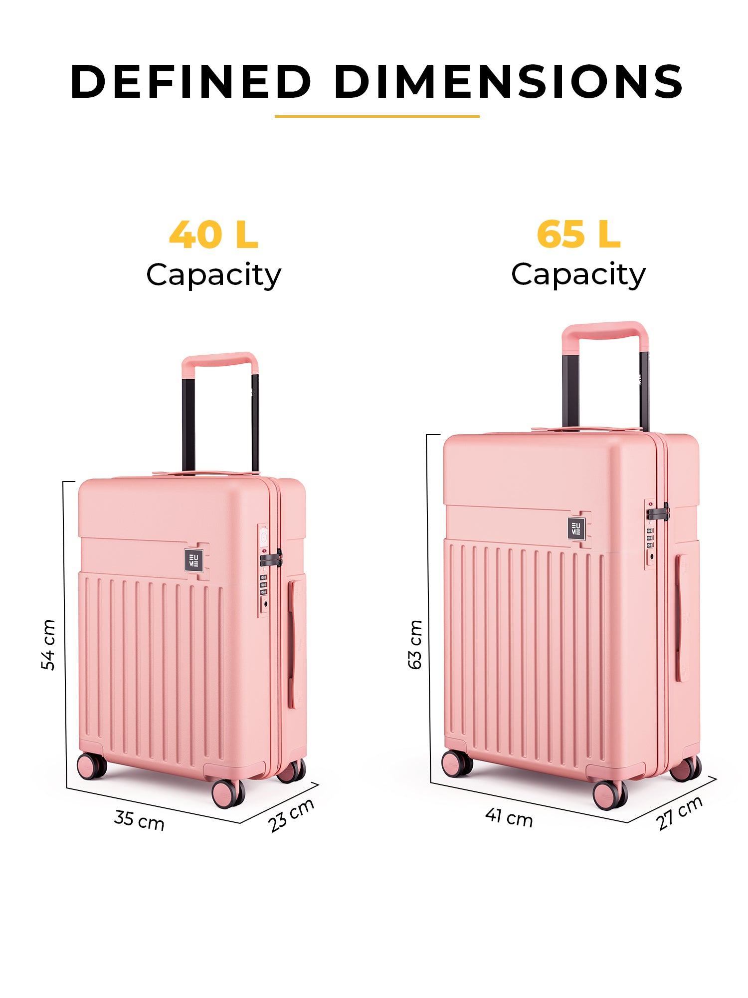 - The Eume classic luggage set includes a compact 20-inch cabin bag and a spacious 24-inch check-in option. Purchasing this combination is perfect for efficiently packing your essentials for a week-long trip. Travel with ease and elegance by choosing Eume luggage.