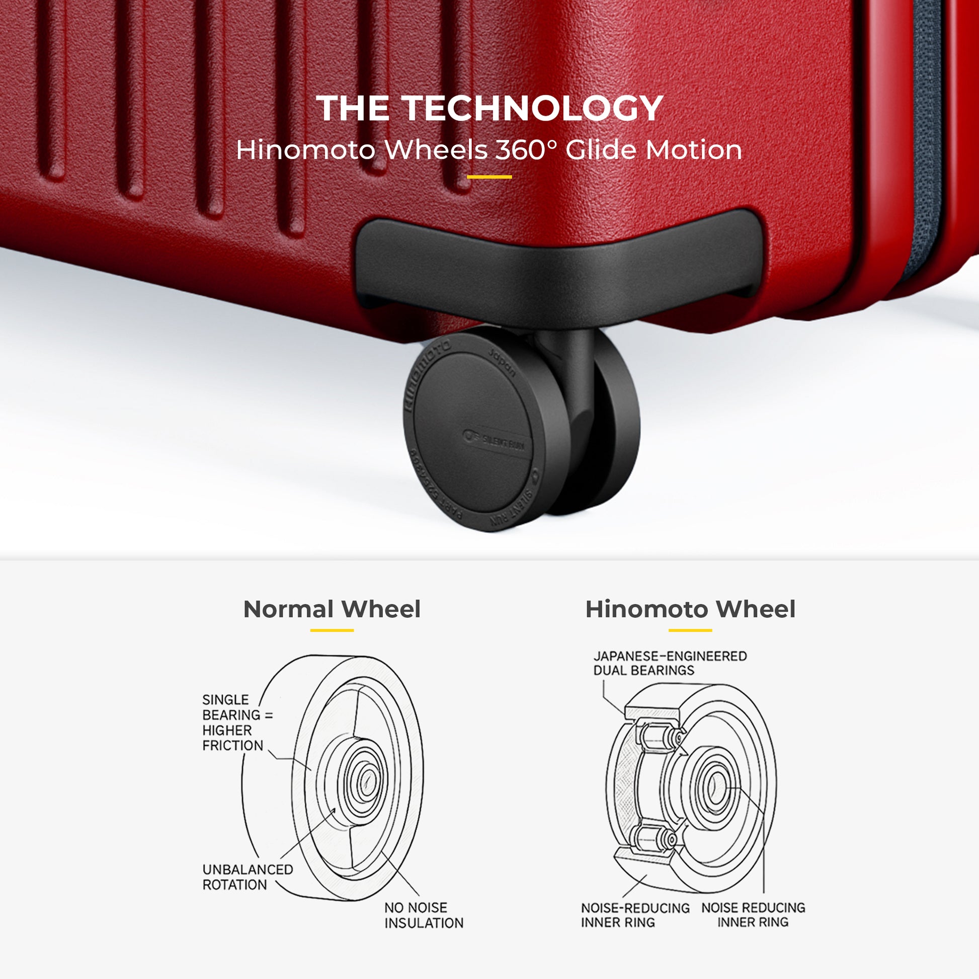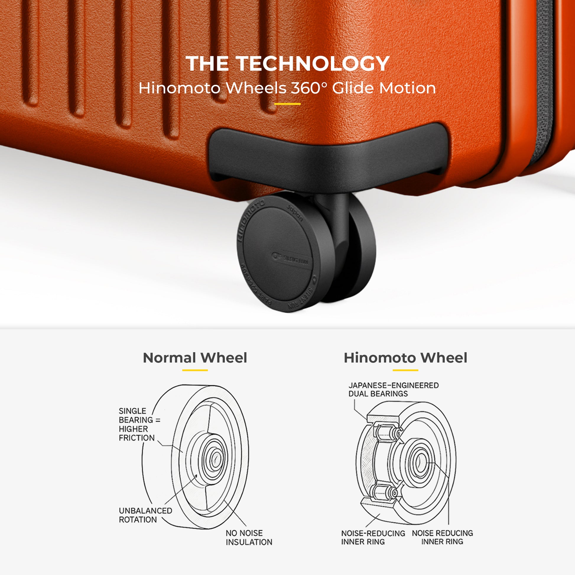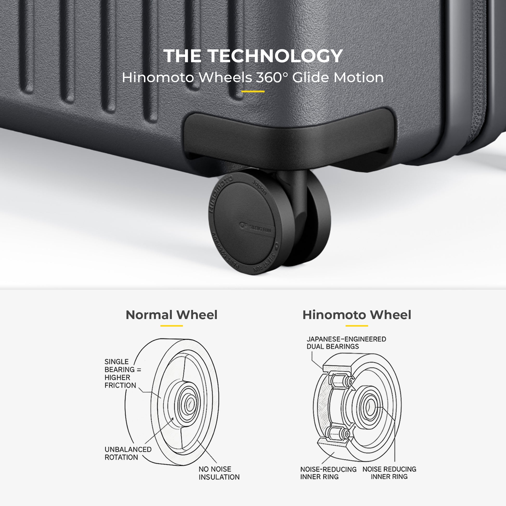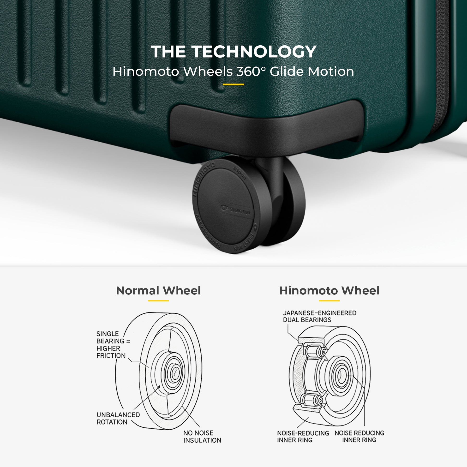 - The silent-run pro double wheels, powered by Hinomoto Japanese technology, ensure smooth and silent handling across any terrain. Security is a top priority, facilitated by TSA-approved combination locks, providing peace of mind while traveling.