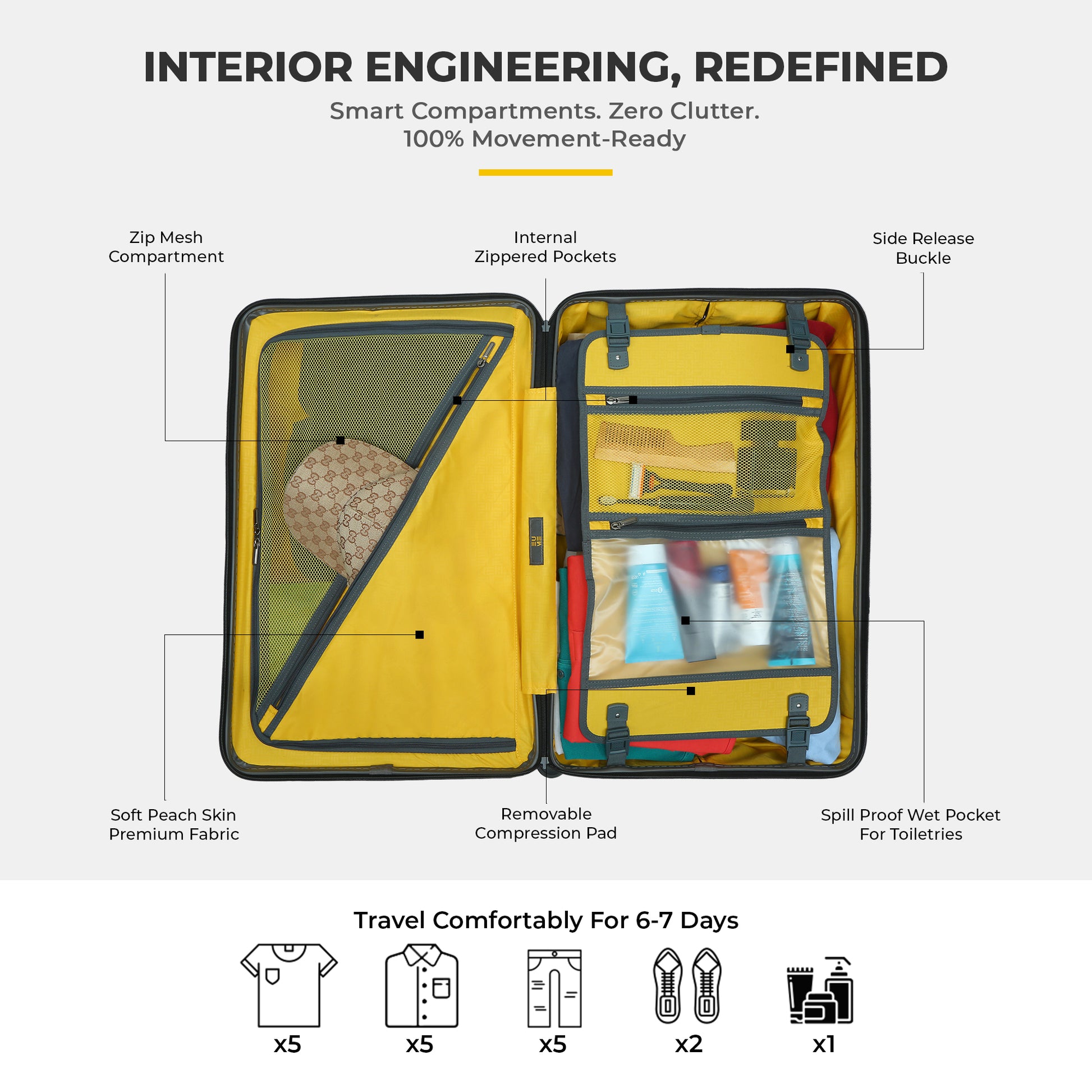 - An antitheft zipper mechanism from SBS further safeguards belongings from unauthorized access. Inside, the luggage offers superior organization with two compartments: one secured by a zipper closure with a zipper pocket on top, and the other featuring a compression pad with a spill-proof zipper pocket and a net zipper pocket for essentials and toiletries. The compression pad serves a triple purpose: it acts as storage for small essentials, keeps clothing in place, and can be hung in hotel rooms with a hook on the back, ensuring toiletries or other items remain organized and accessible only when needed.
