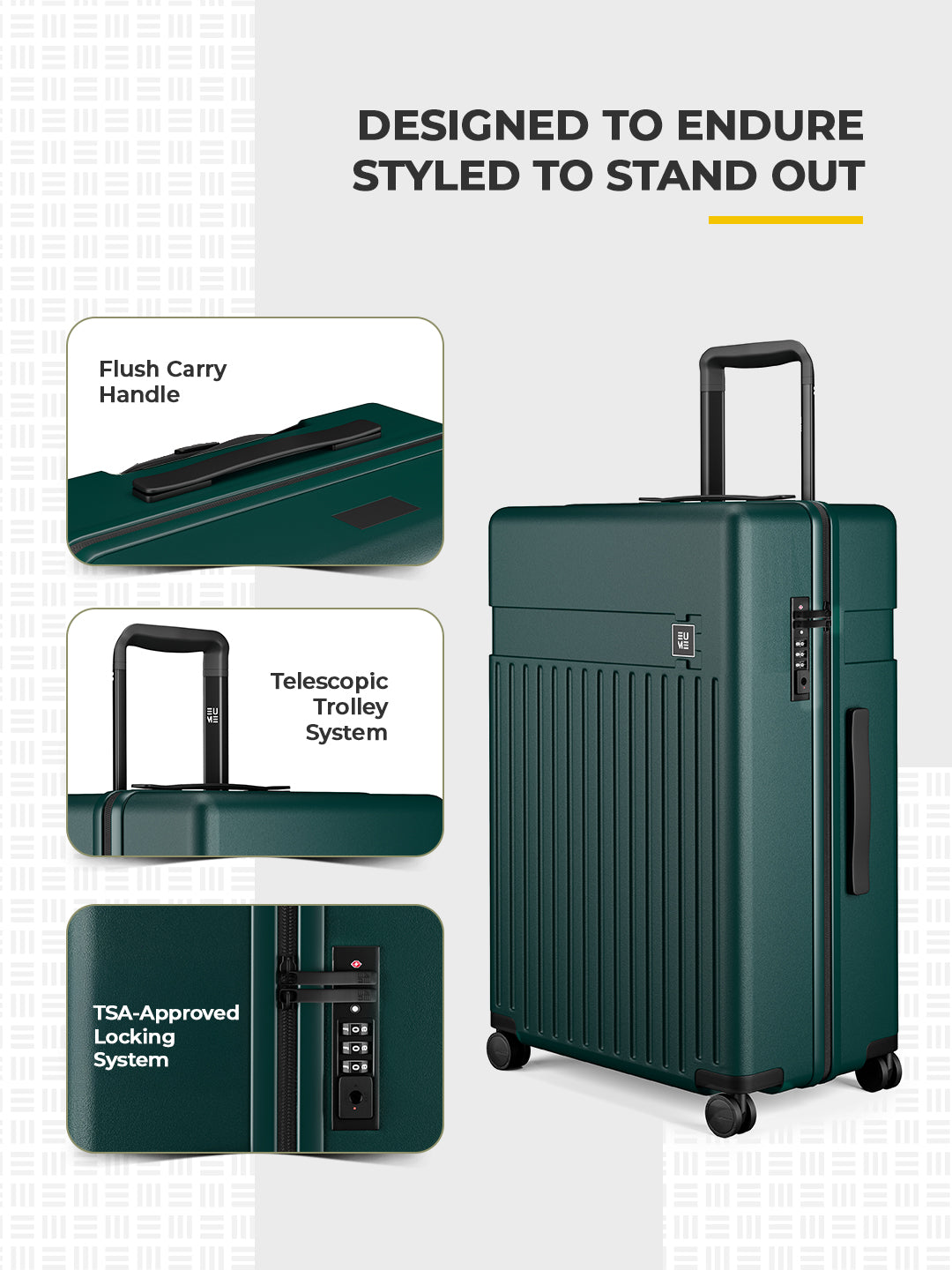 - Overall, Eume luggage combines cutting-edge materials and thoughtful design to offer a superior travel experience