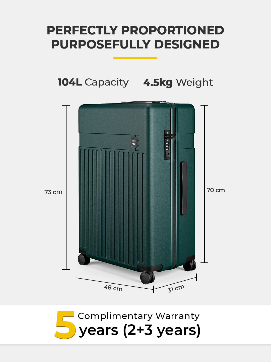 Travel Luggage: Comes with a 5-year extended warranty, with 2 years complimentary and an additional 3 years upon registration on our warranty page via https://eumeworld.com/pages/warranty.