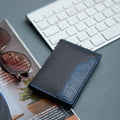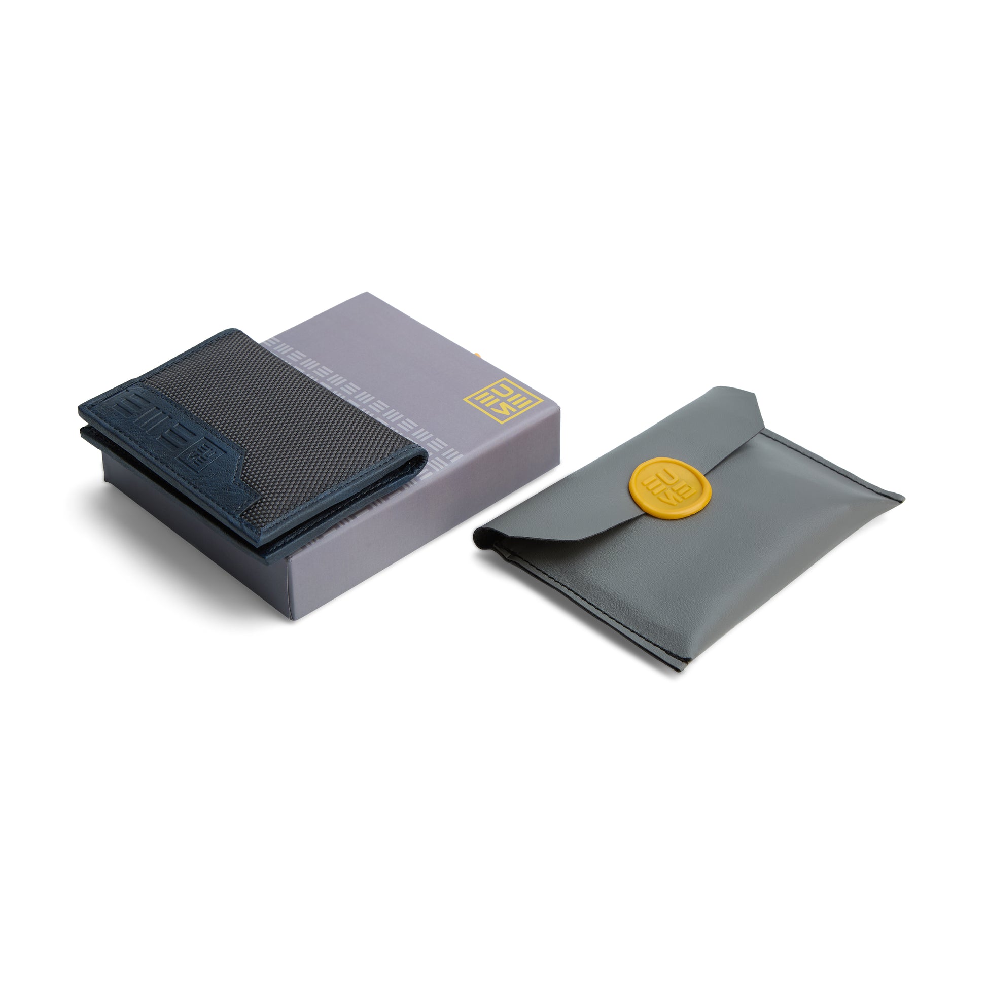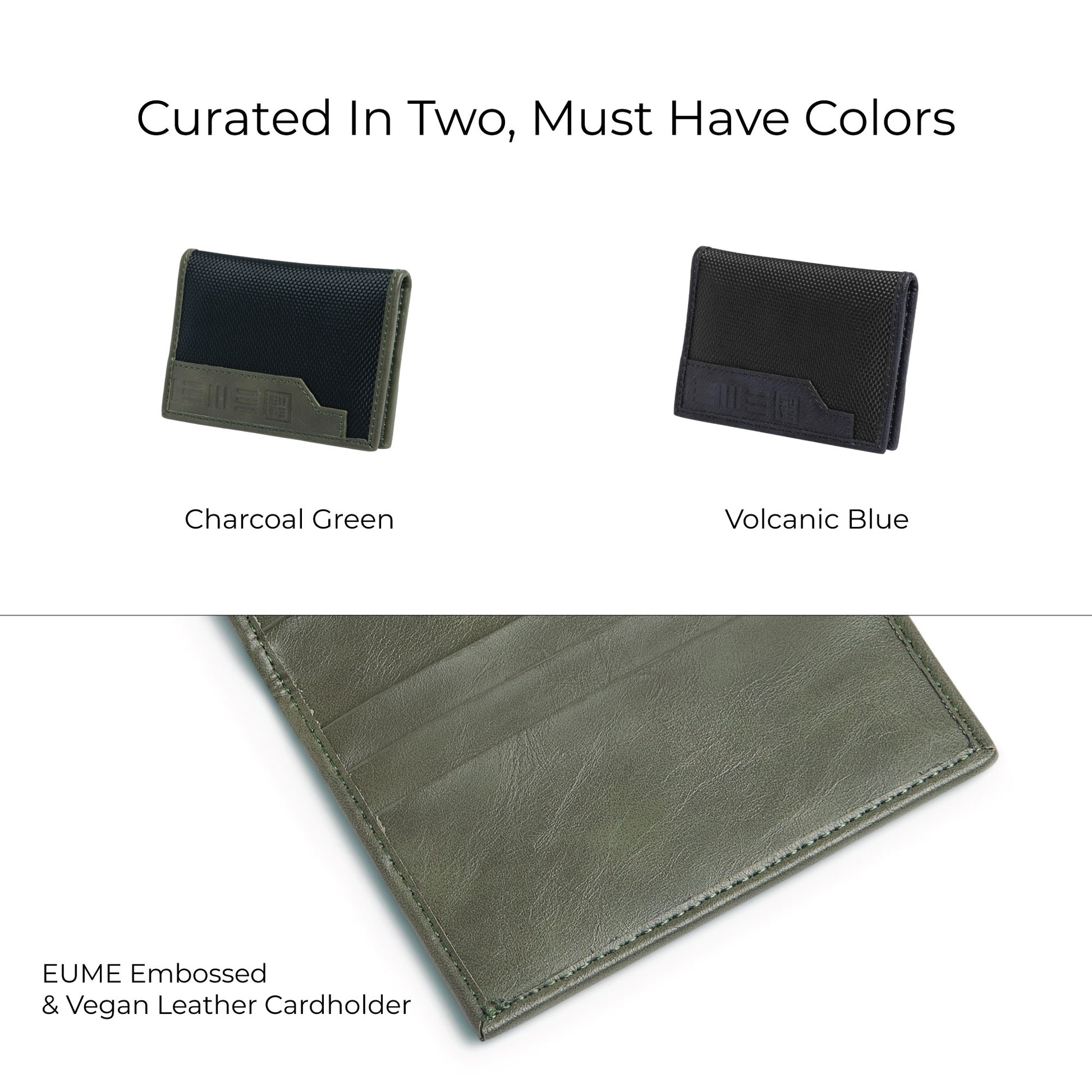 - The EUME card holder, a sophisticated fusion of navy blue and grey, embodies your unique style. Crafted from premium vegan leather and durable nylon, this card holder wallet for man is designed to elevate your everyday carry while ensuring long-lasting durability. Whether you're looking for a stylish credit card holder or a functional visiting card holder, this sleek and compact accessory is the perfect solution.