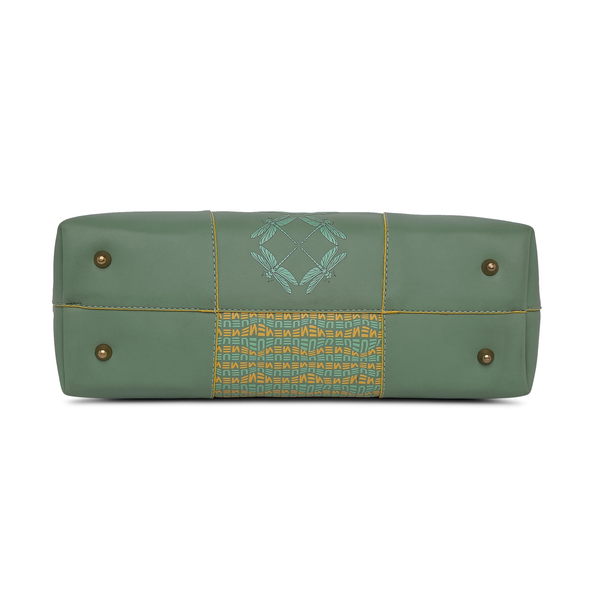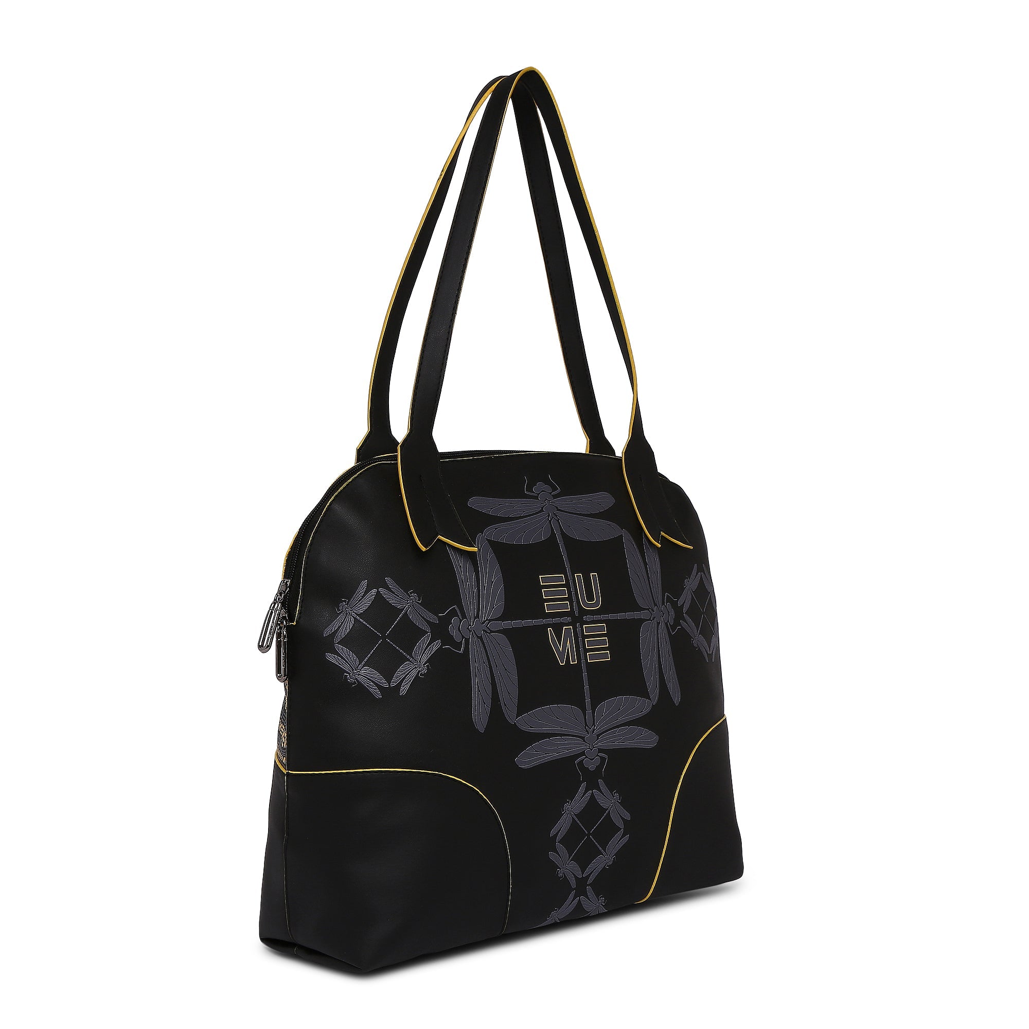 EUME's Made in India Dragonfly Collection is made of premium quality vegan leather. and comes with a cotton drill lining inside. This product comes under the Tote Bags/ Bowling Bag/ Large Bag category. Find it in 3 colours - Black, Basil Green and Hot Sauce.