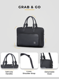 - This office bag has two distinct handles that cater to different carrying preferences. The two rope handles of this laptop bag provide a firm grip and exude refinement. Alternatively, use the adjustable and detachable shoulder sling, which comes with a padded shoulder pad for enhanced comfort during longer wear. The addition of a trolley strap enhances to its adaptability, perfectly blending into your travel routine.