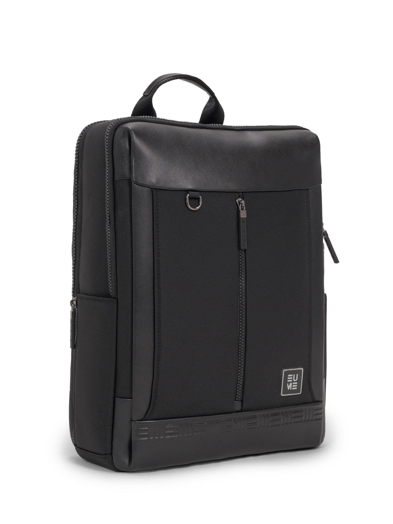 - Gravitas by EUME is a premium backpack crafted from waterproof nylon and high-grade microfiber, designed for the modern professional. Its dual compartment layout offers effortless organization. The rear compartment features a plush fleece padded lining to safeguard laptops up to 16 inches, while the front compartment includes intuitive pockets for all your everyday essentials.