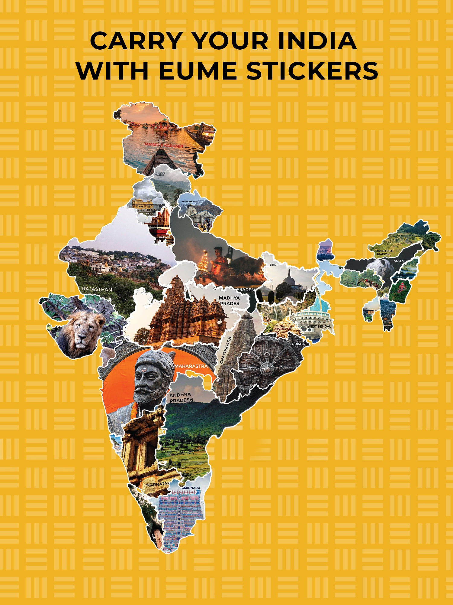 This exclusive set of 29 water resistant stickers represents all 29 Indian states, each thoughtfully designed as an ode to India’s rich culture, heritage, and diversity. Every sticker captures the essence of a state through modern illustrations inspired by its traditions, symbols, and identity.