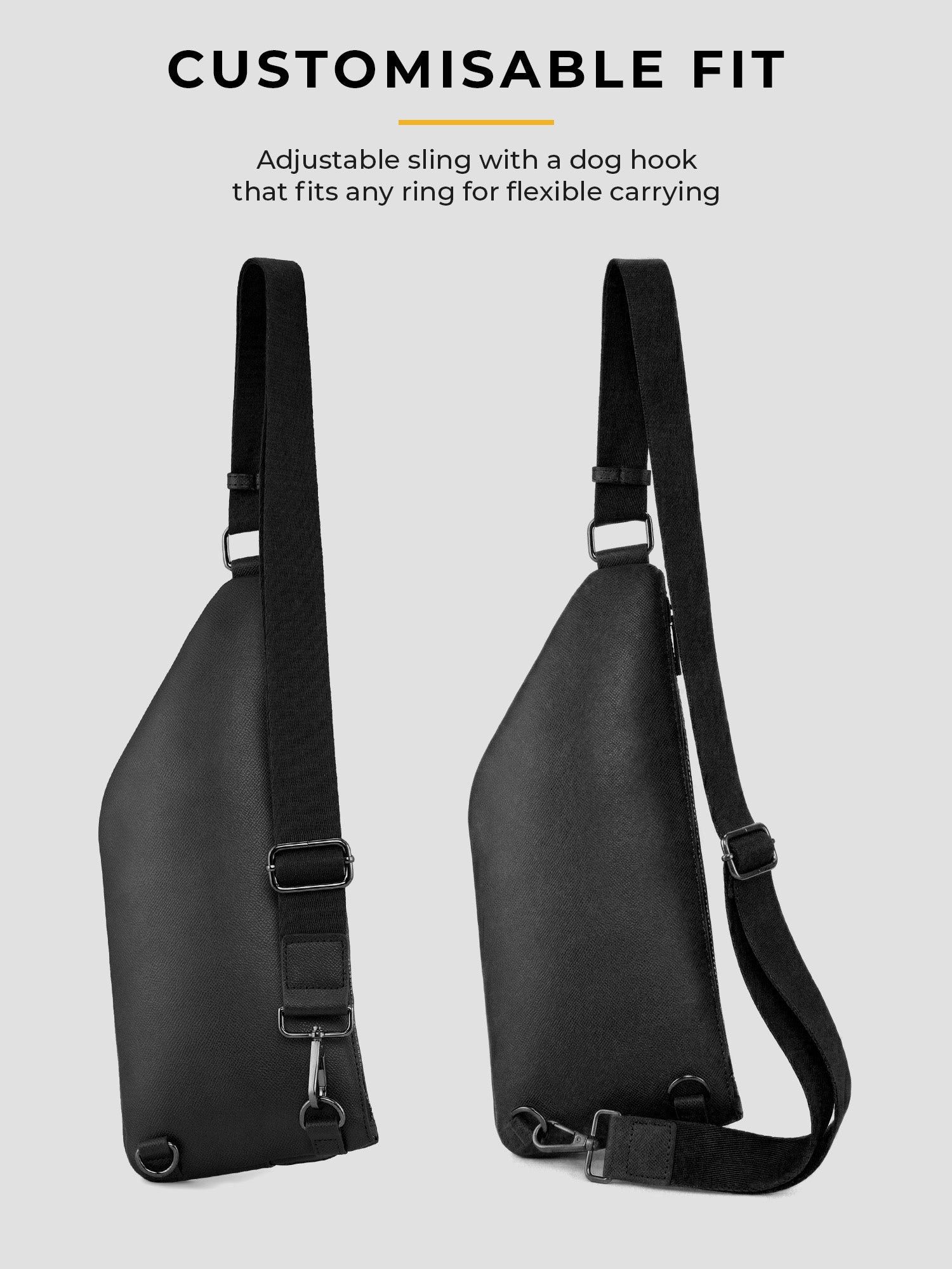 The adjustable sling strap with a dog hook allows for flexible styling, letting you wear it around the waist, across the chest, or over the shoulder with ease. Lightweight and comfortable, the Kinetic fanny pack moves with you, adapting seamlessly to your pace and routine.