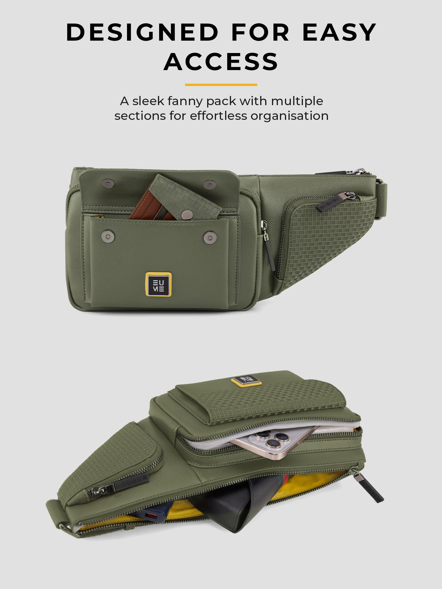 The Kinetic Fanny Pack is designed for life on the move, where style, speed, and smart organisation come together effortlessly. Sleek and compact with a contemporary silhouette, it is the perfect everyday essential for city days, travel, and hands free mobility.