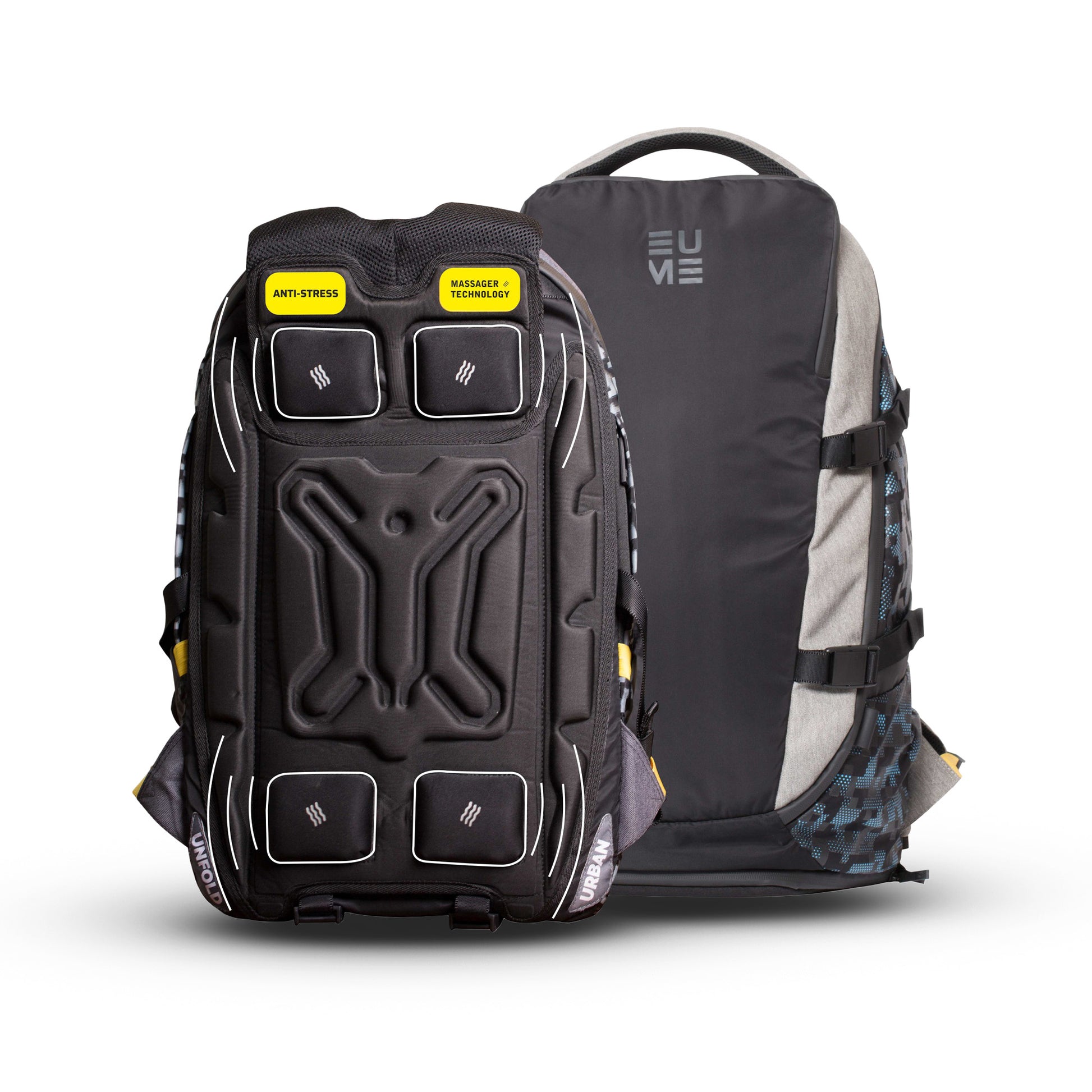While you're out exploring the world, a trusted companion by your side that makes things easier for you in harsher, newer conditions is an absolute essential. We gurantee that you will find that friend in EUME's most trustworthy creation - Move. Crafted for the explorer in you, Move is a large massager backpack that houses us propreitary massage technology - 4 massagers that tackle your 4 pressure points, a compartmentalised design on the inside to help you do the same and a padded section for laptops up to 17 inches and padded shoulder straps. Move for the explorer in you!