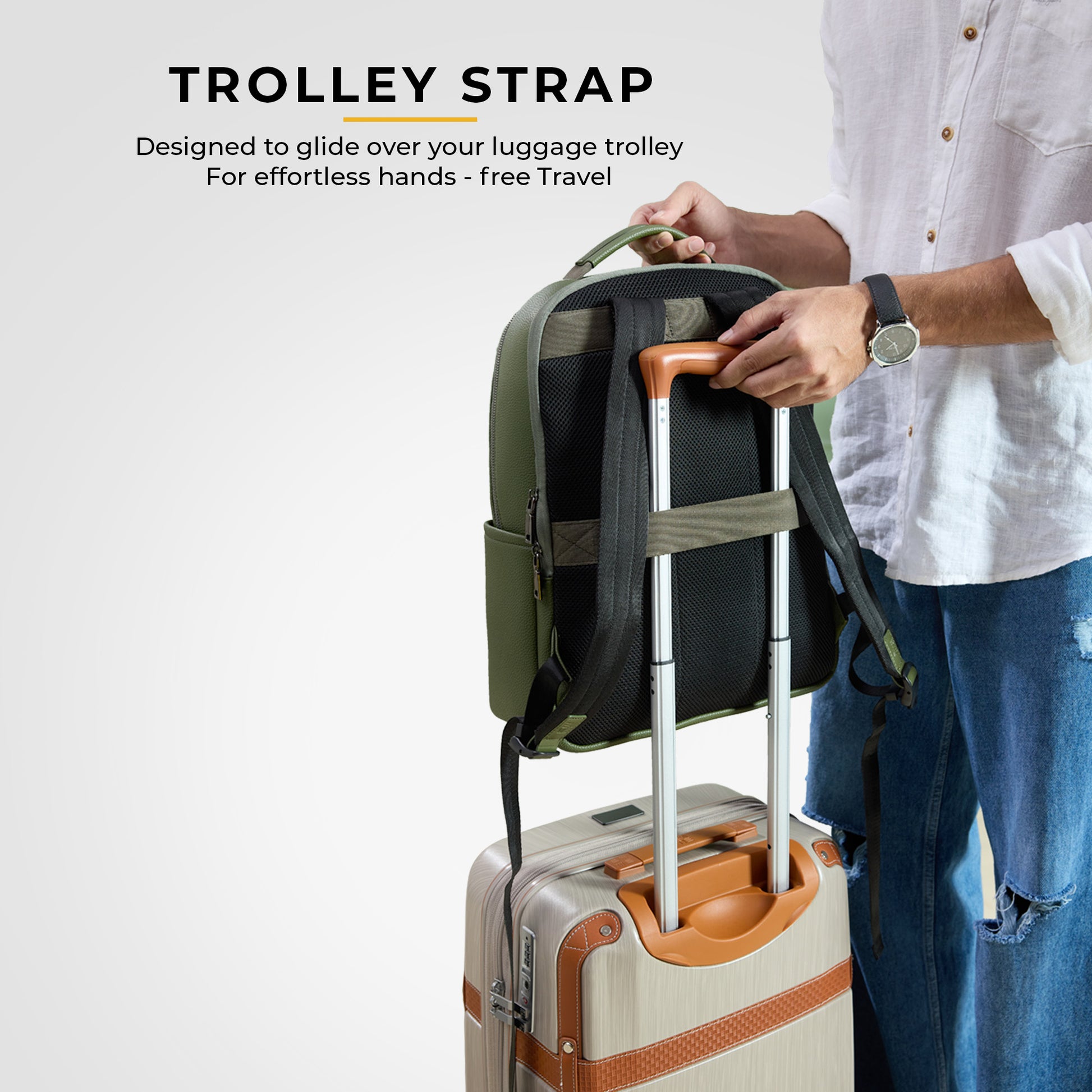 For maximum comfort, the backpack features a soft, breathable mesh back panel and well-cushioned, adjustable shoulder straps, making it easy to wear all day. A convenient trolley strap on the back allows you to slide the backpack onto your luggage handle, making it a perfect companion for business trips and travel.