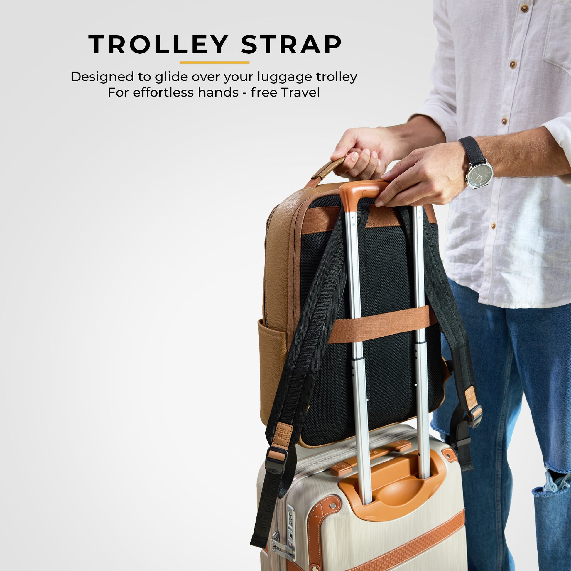 For maximum comfort, the backpack features a soft, breathable mesh back panel and well-cushioned, adjustable shoulder straps, making it easy to wear all day. A convenient trolley strap on the back allows you to slide the backpack onto your luggage handle, making it a perfect companion for business trips and travel.