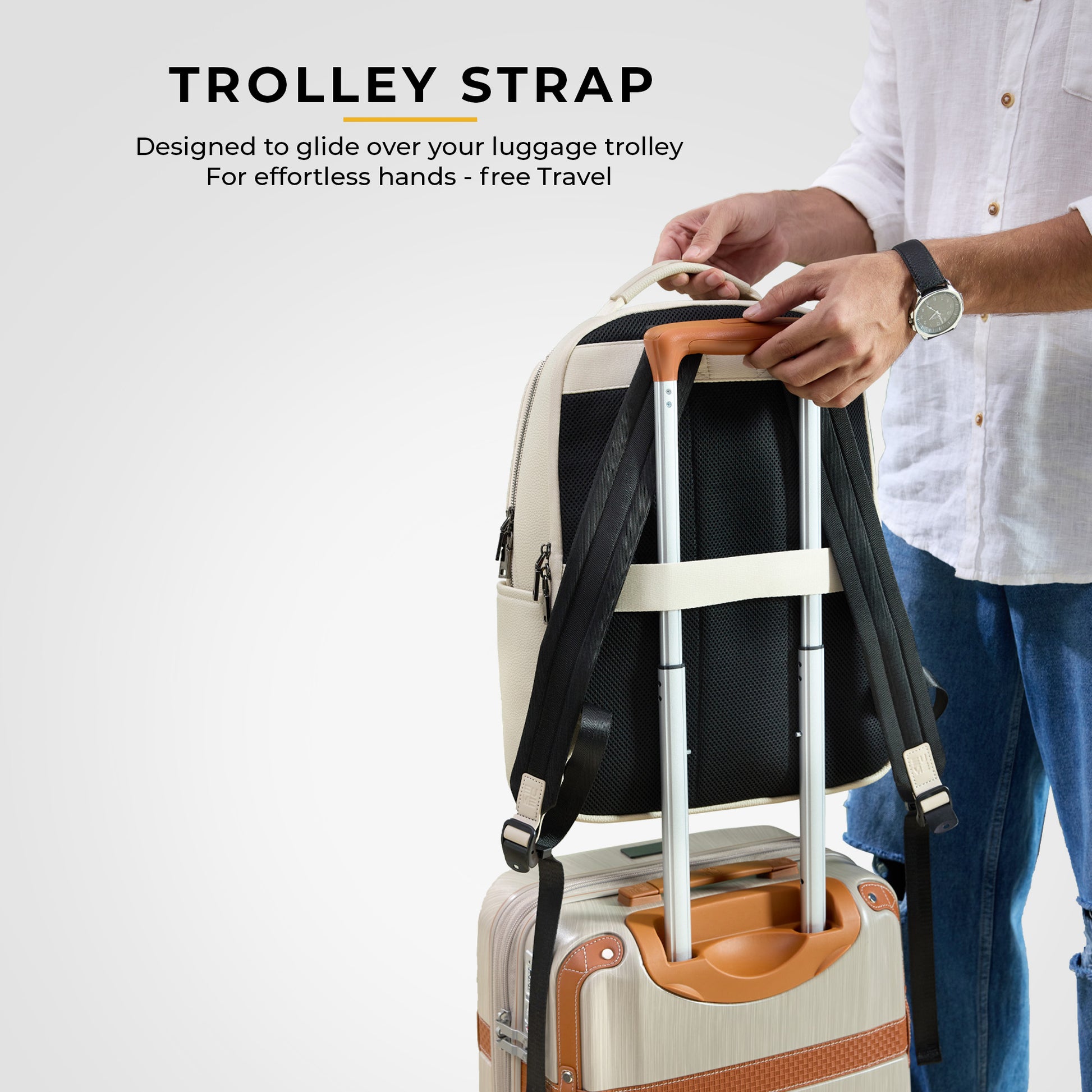 For maximum comfort, the backpack features a soft, breathable mesh back panel and well-cushioned, adjustable shoulder straps, making it easy to wear all day. A convenient trolley strap on the back allows you to slide the backpack onto your luggage handle, making it a perfect companion for business trips and travel.