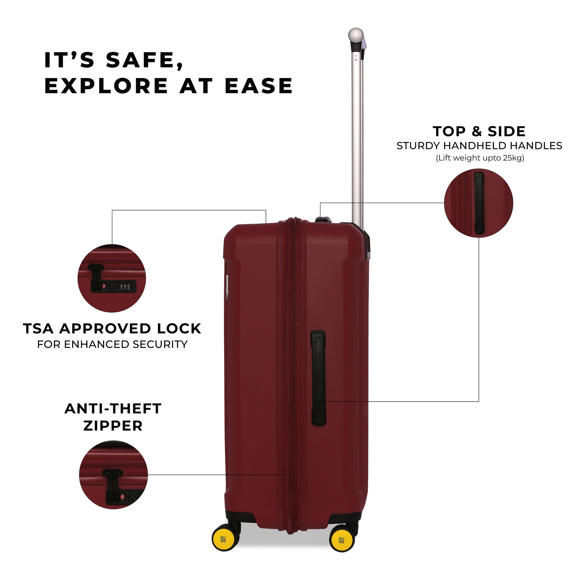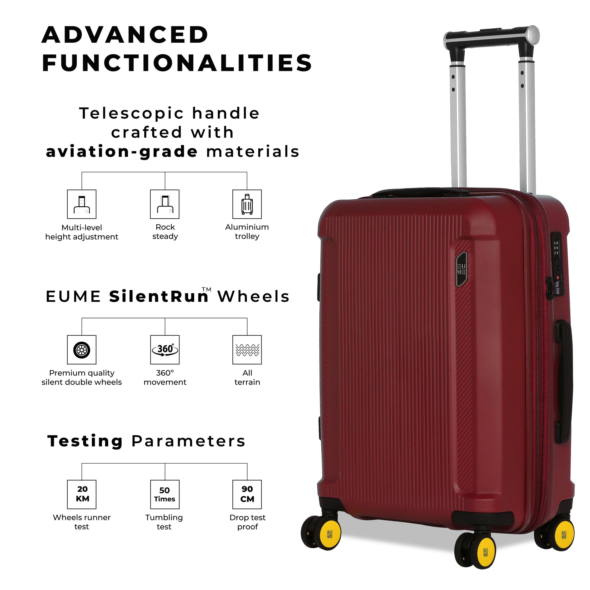 Travel Luggage: Comes with a 5-year extended warranty, with 2 years complimentary and an additional 3 years upon registration on our warranty page via https://eumeworld.com/pages/warranty.