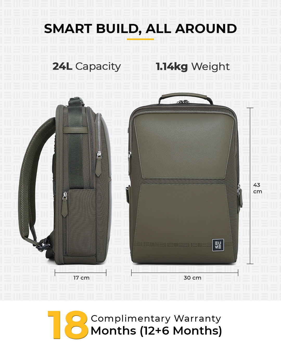 All other products: Including backpacks, handbags, and accessories, come with a 1.5-year extended warranty, with the first year complimentary and an additional 6 months upon registration on our warranty page via https://eumeworld.com/pages/warranty.