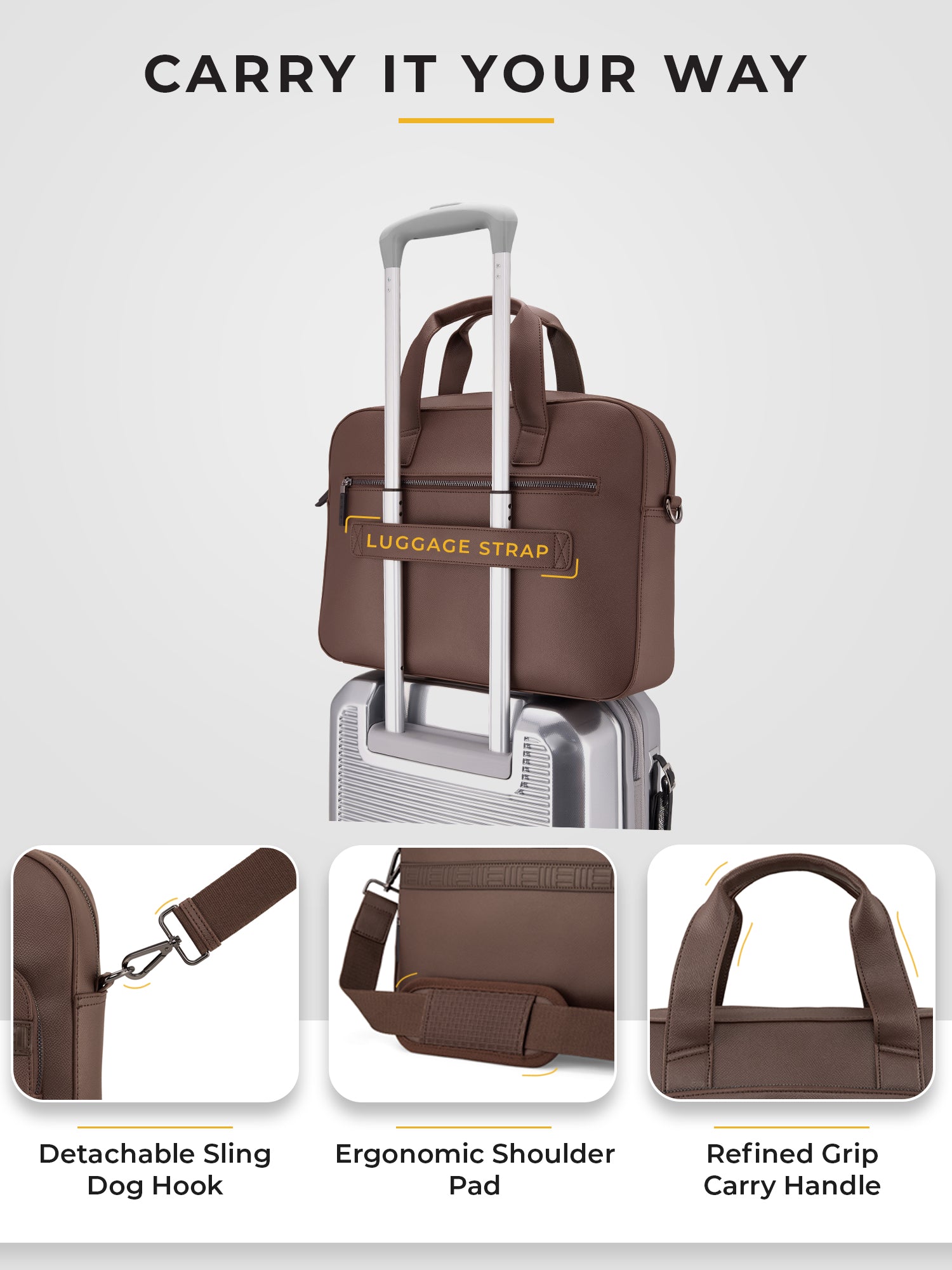 The Optimo Laptop Briefcase is a refined expression of modern professionalism, crafted for those who move seamlessly between work, travel, and everyday life. Designed with clean lines and a structured silhouette, Optimo brings understated sophistication to your daily carry while making a confident style statement.