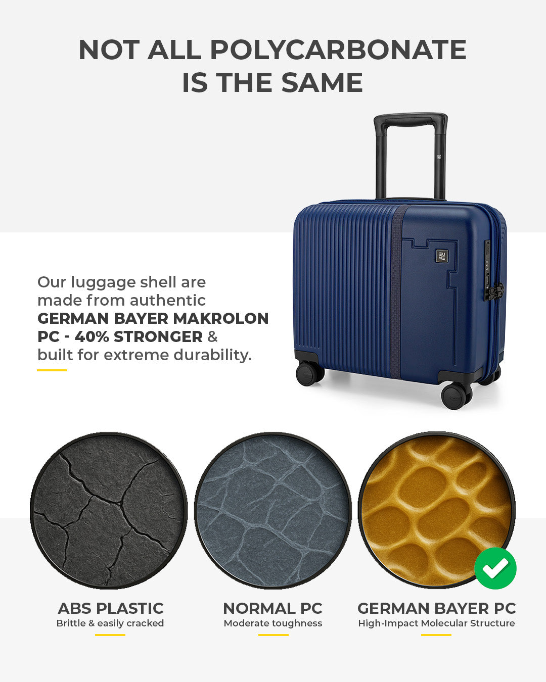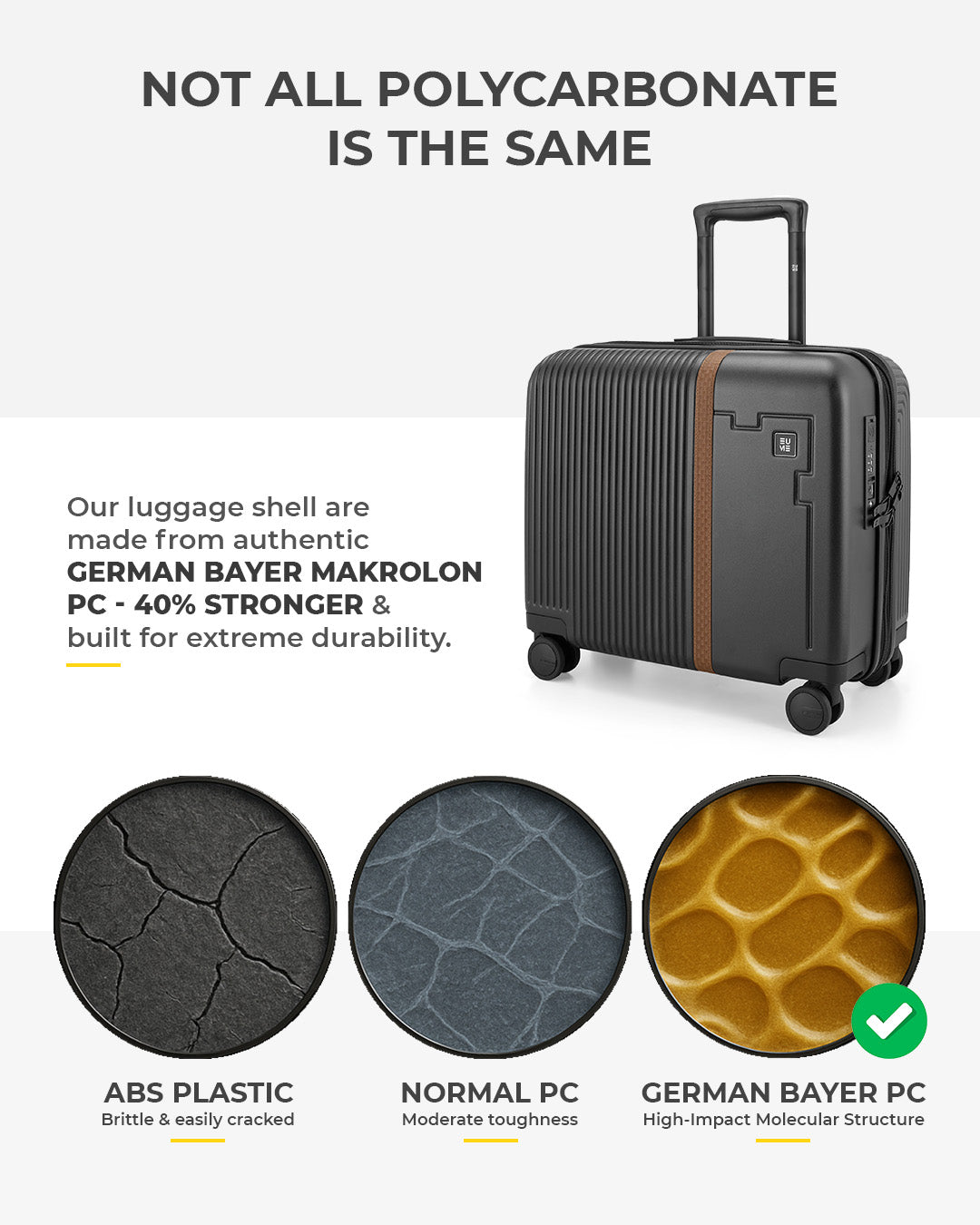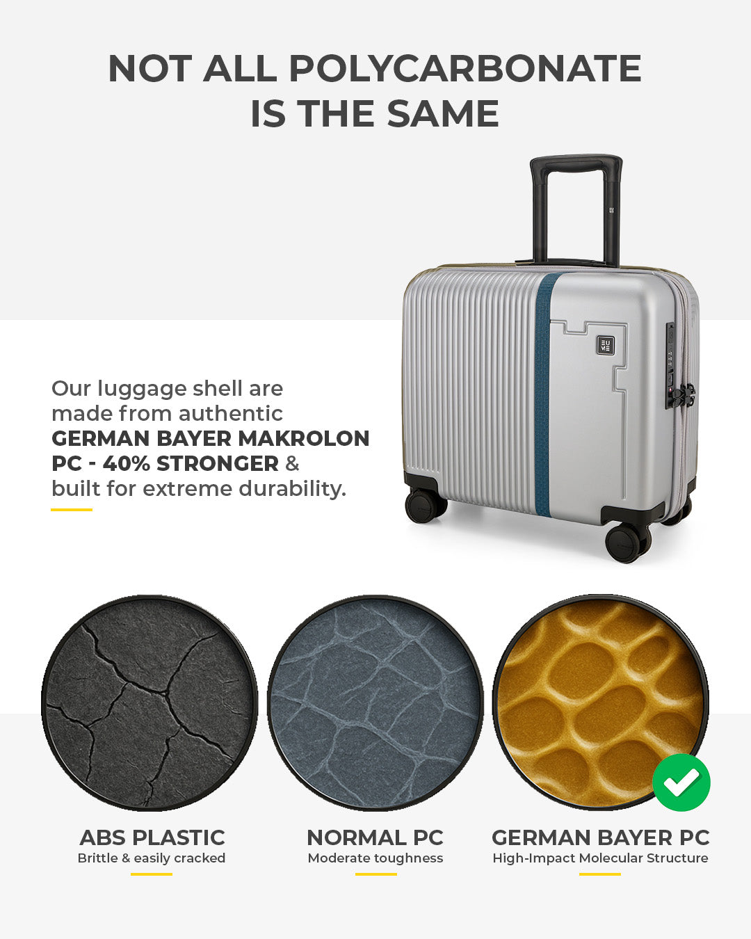 - This 16" overnighter is the ultimate travel companion, expertly crafted from 100% German Bayer polycarbonate for exceptional durability and resilience. Crafted for the Modern Professional