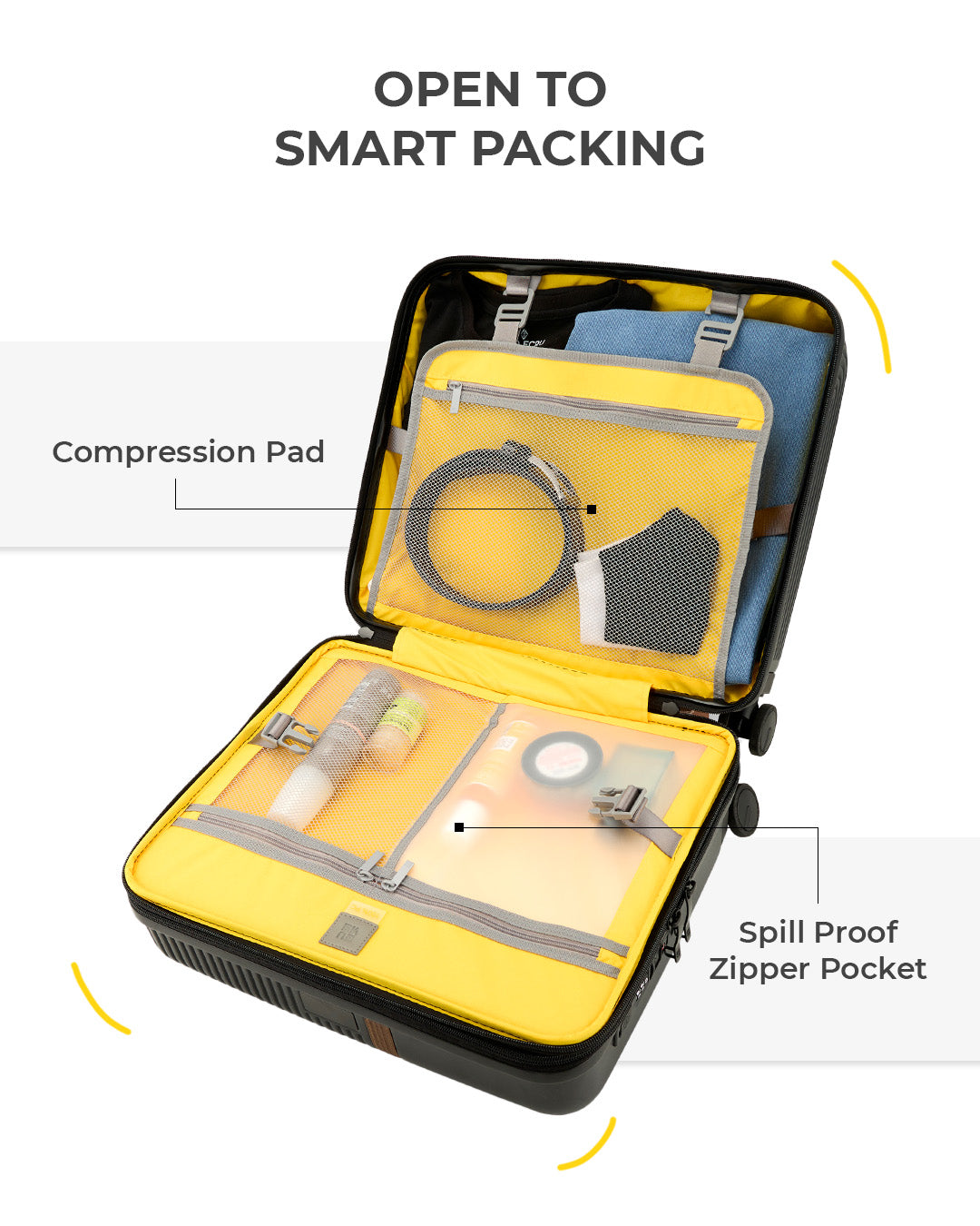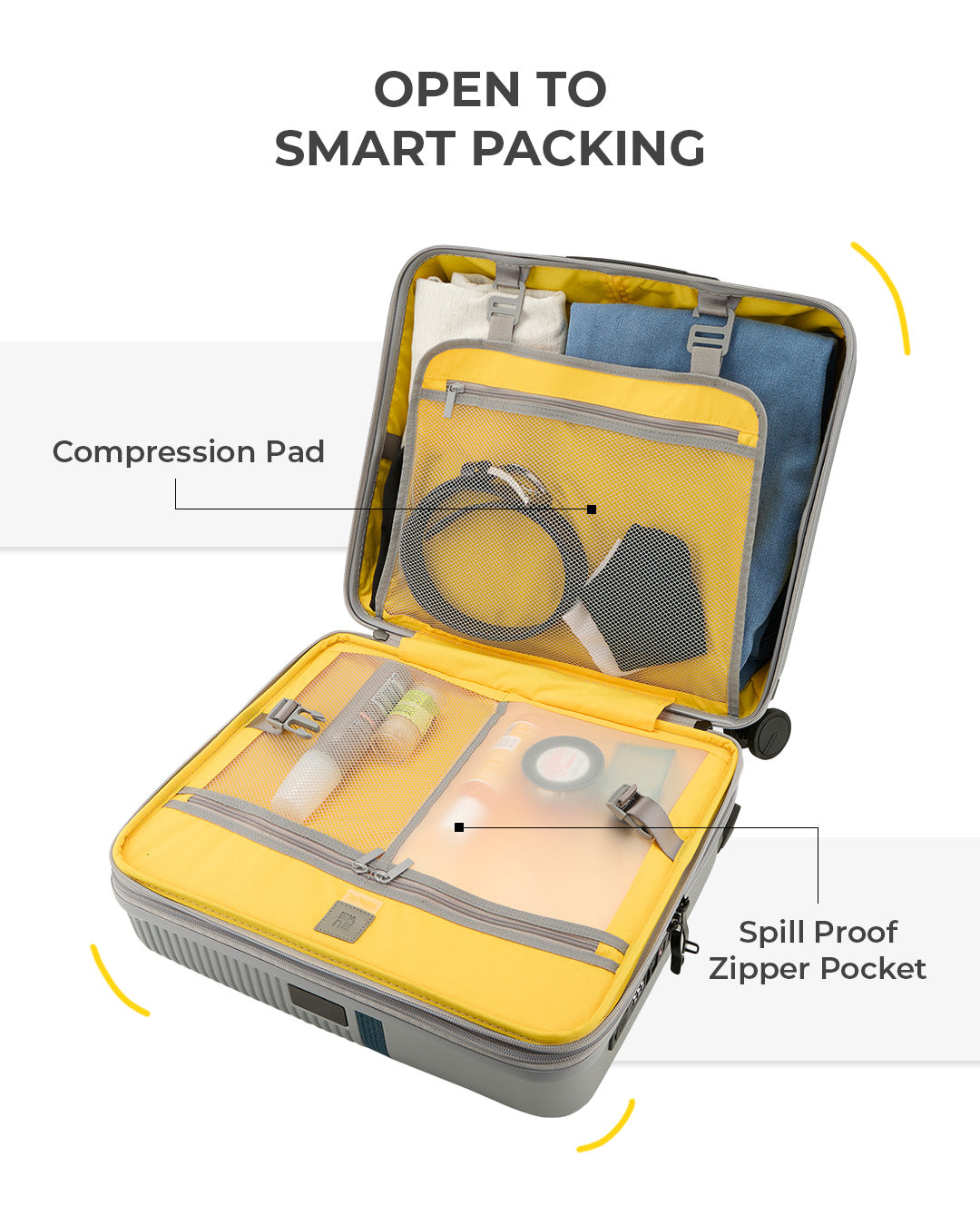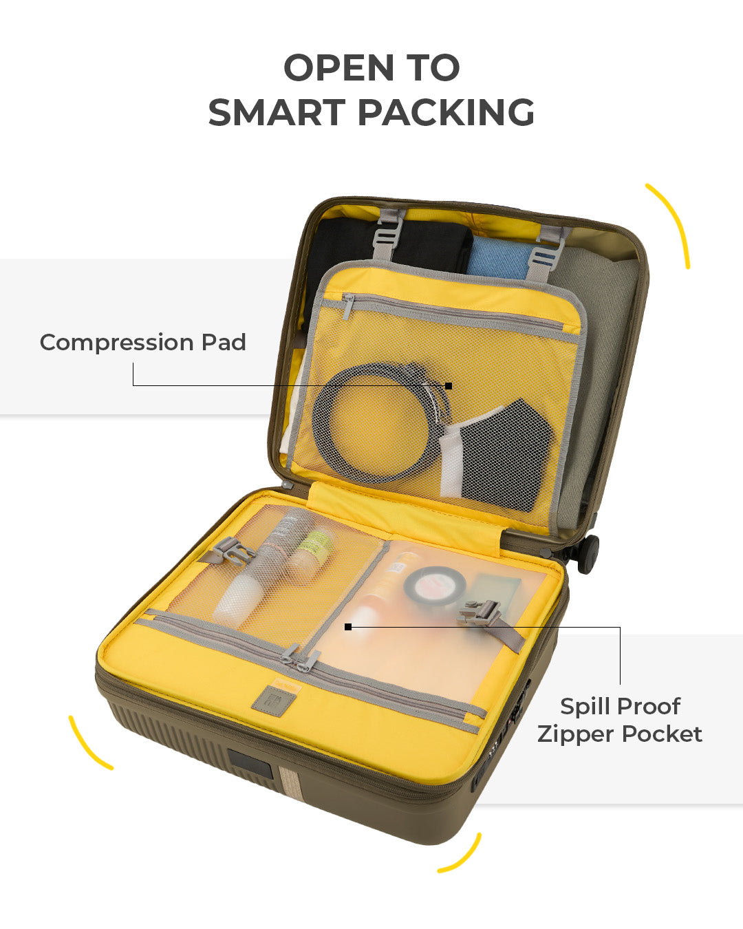 - This spacious section includes a spill-proof wet toiletry pocket and a versatile compression pad. The compression pad not only helps keep clothing in place but also features zipper storage for small essentials and a built-in hook for hanging in hotel rooms, keeping your items organized and accessible.