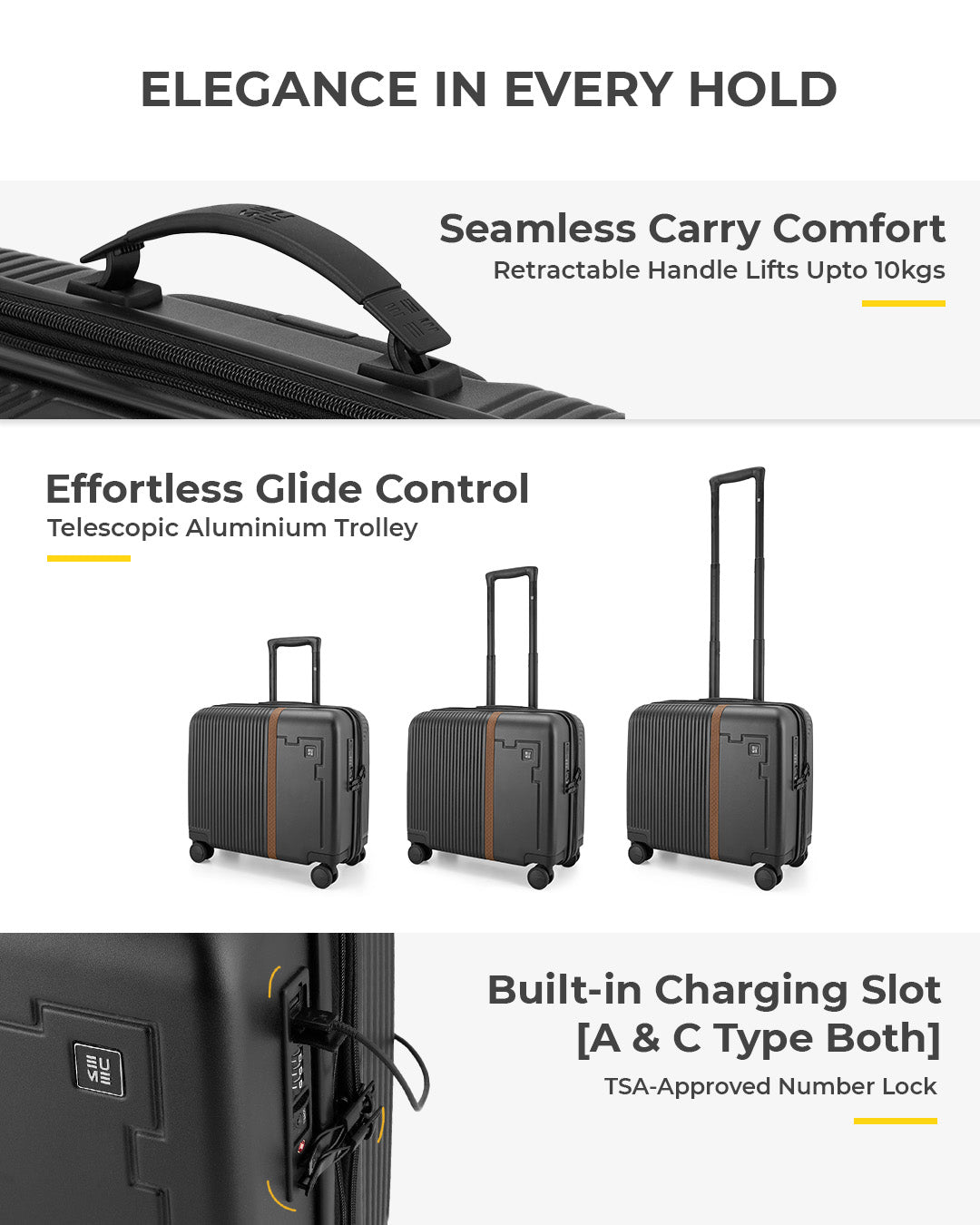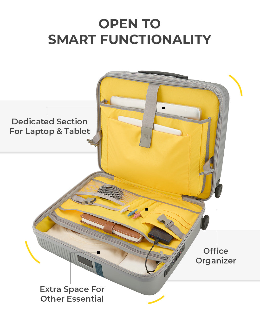 - Travel is effortless with Hinomoto Japan silent-run wheels and an anti-theft zipper. Security is paramount with the integrated TSA lock, which also includes A & C type charging slots and a power bank pocket with internal wiring to keep your devices powered.