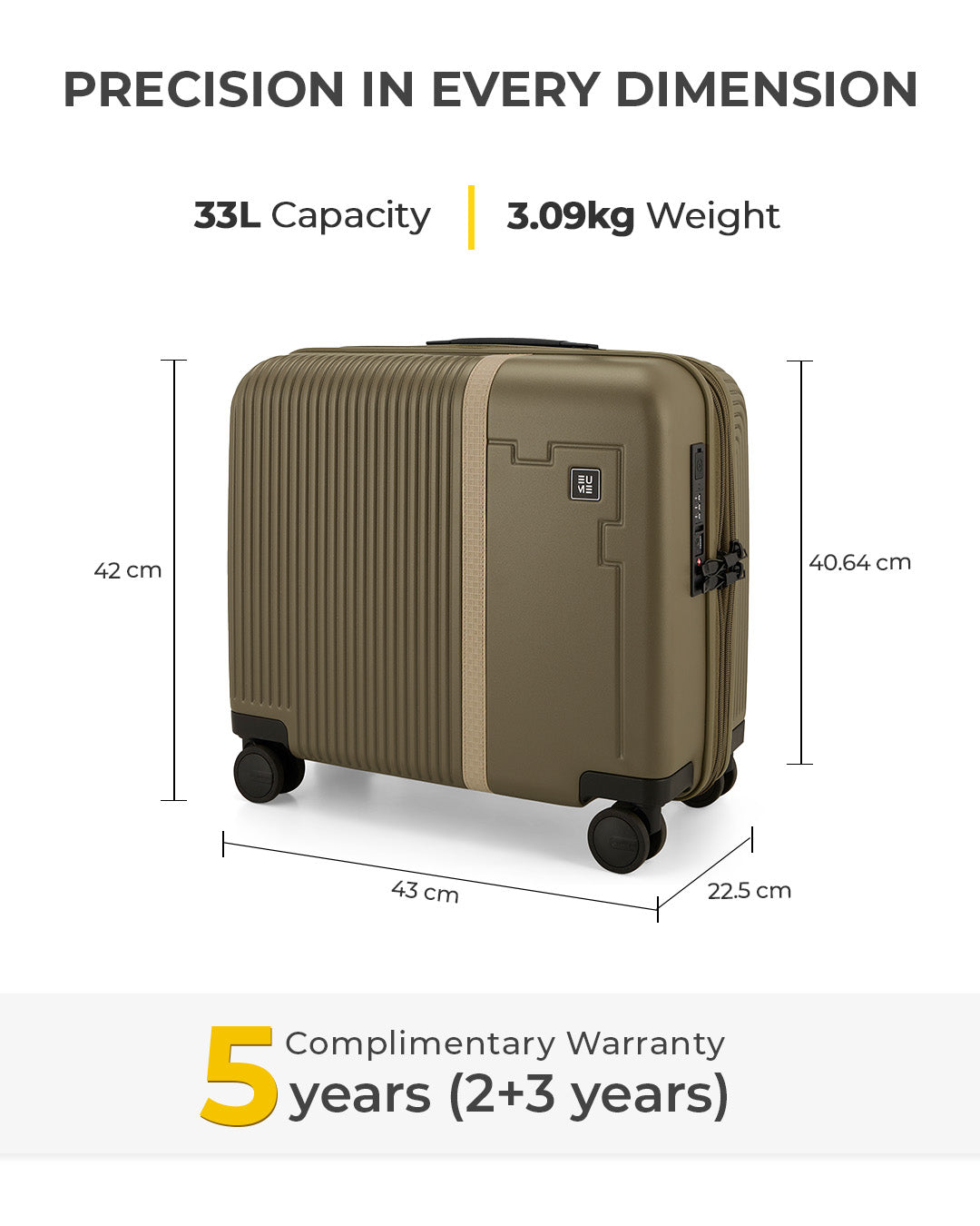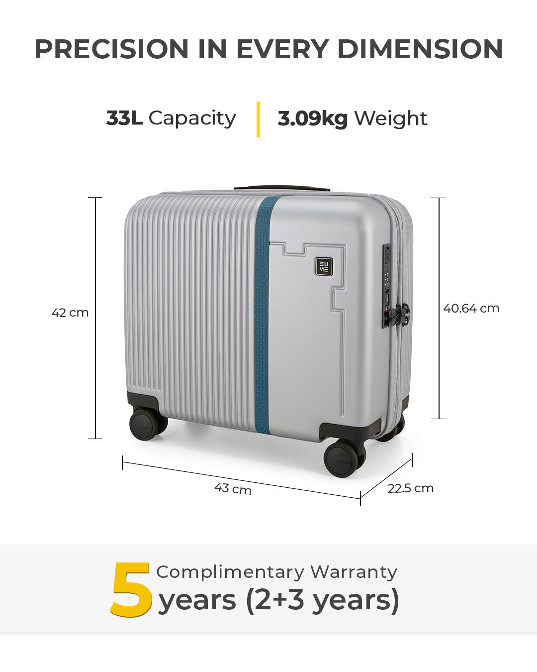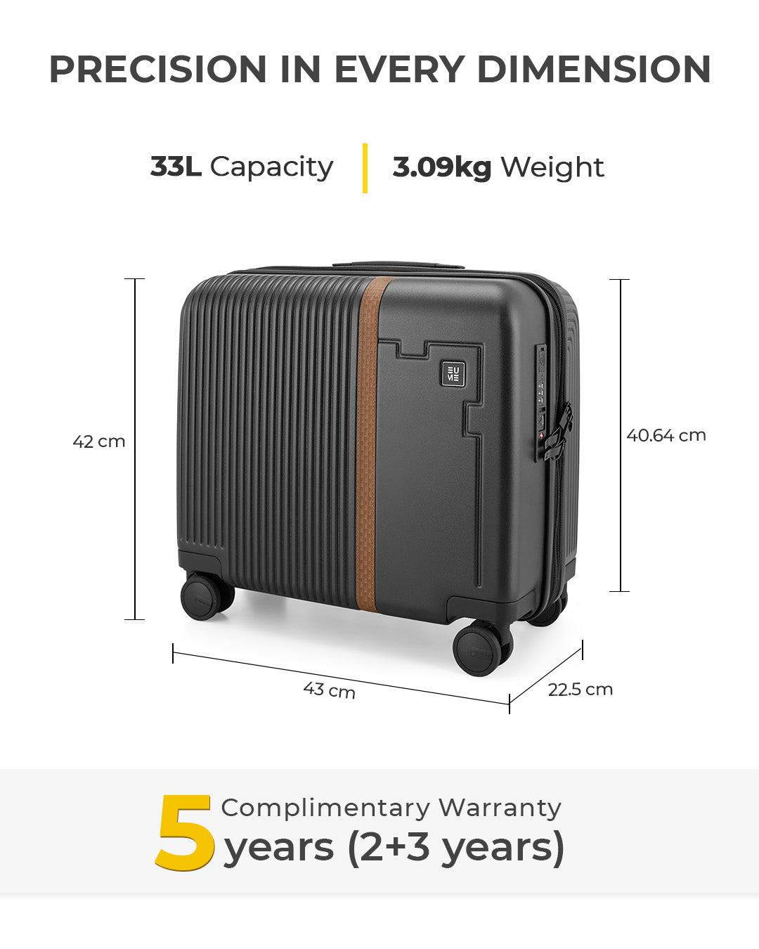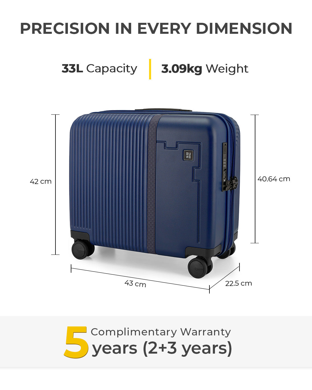 Travel Luggage: Comes with a 5-year extended warranty, with 2 years complimentary and an additional 3 years upon registration on our warranty page via https://eumeworld.com/pages/warranty.