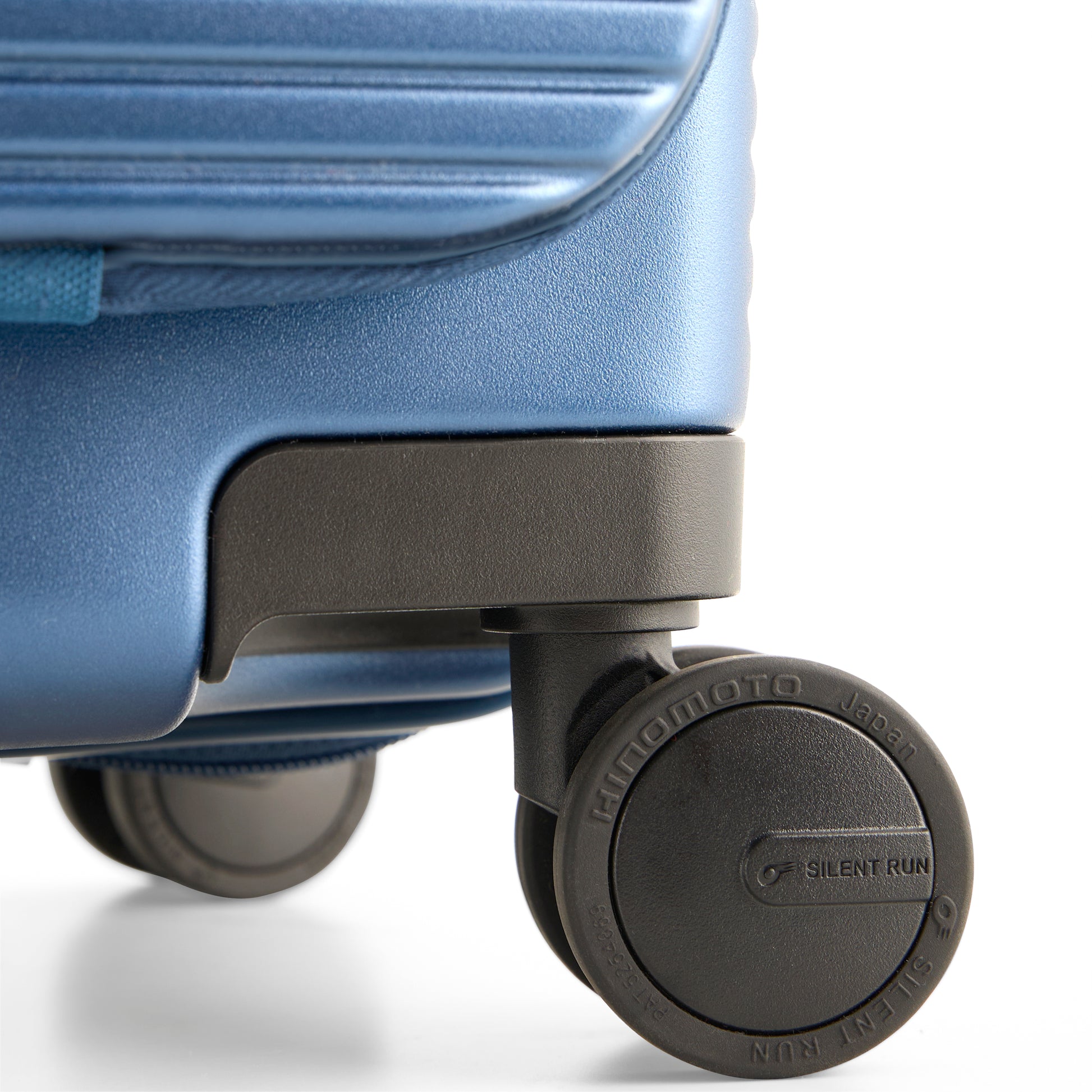 Travel is effortless thanks to the Hinomoto Japan silent-run wheels and an anti-theft zipper. The interior is lined with a high-quality peach skin lining, complemented by mesh for ventilation. Finally, ensure your luggage is unmistakably yours with up to 10 characters of customization.
