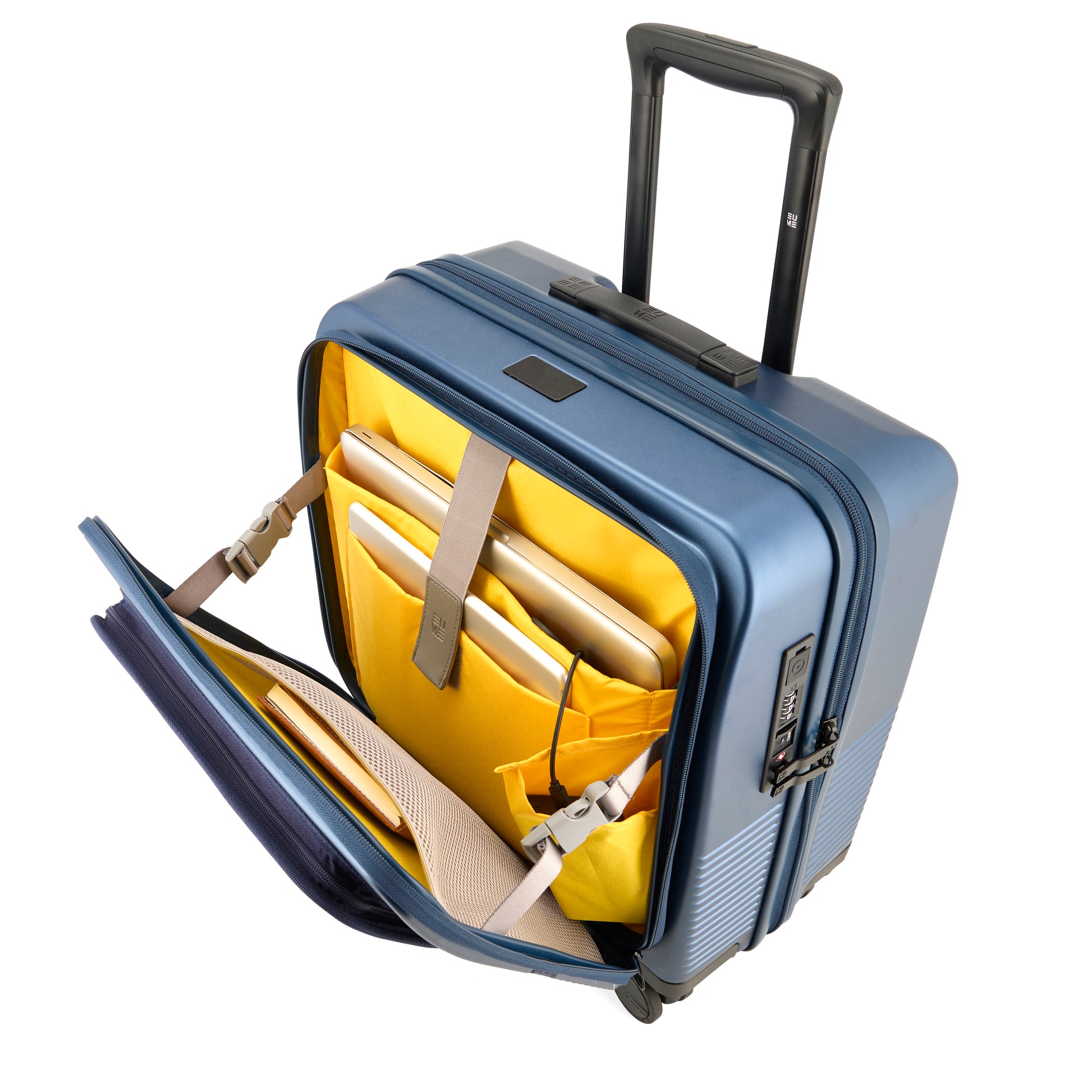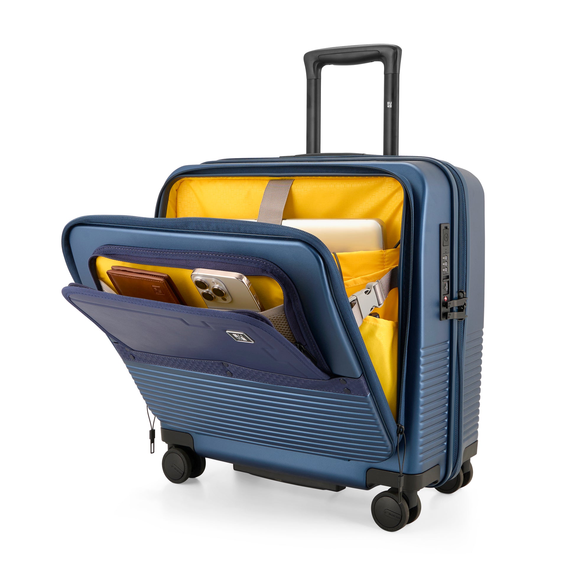This 18" overnighter is specifically designed for the discerning business professional, offering a blend of robust protection and superior organization. Expertly crafted from 100% German Bayer polycarbonate, it ensures exceptional durability and resilience for frequent travel.