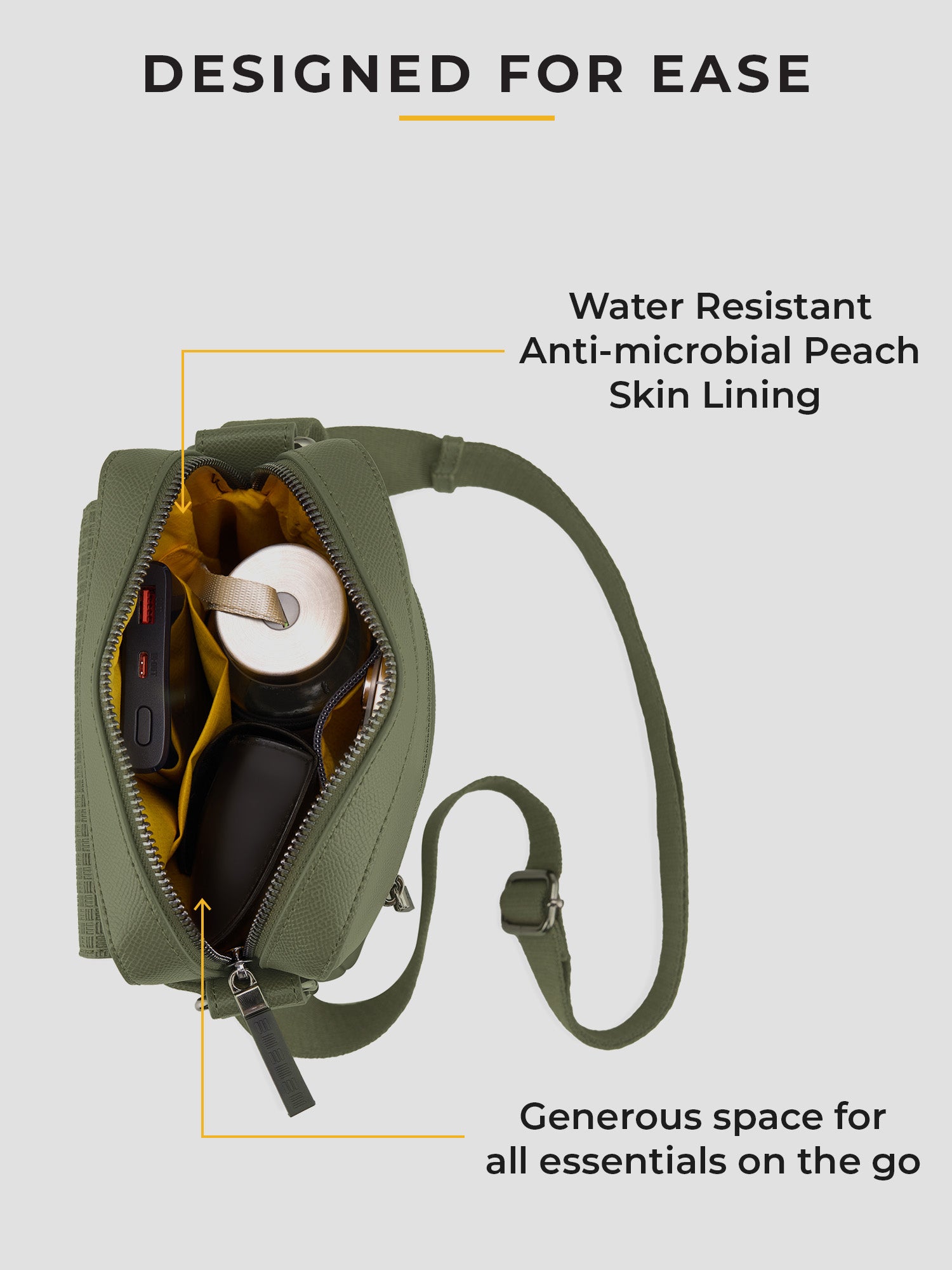 An adjustable sling strap ensures a comfortable, customised fit, allowing you to wear it crossbody or over the shoulder with confidence. Lightweight yet spacious, the Packsy sling bag adapts seamlessly to your routine, keeping up with your pace wherever the day takes you.