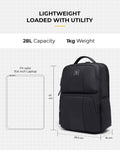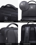 - Comfort and structure are built into the design, with a back panel made of embossed EVA foam that provides ergonomic support and reinforces the brand identity. The shoulder straps are well-padded and include a lock adjuster for the perfect fit, while the breathable mesh on the back of the straps ensures comfort during extended use. For business trips or daily commutes, the backpack includes a trolley strap, allowing it to slide easily onto your luggage handle.