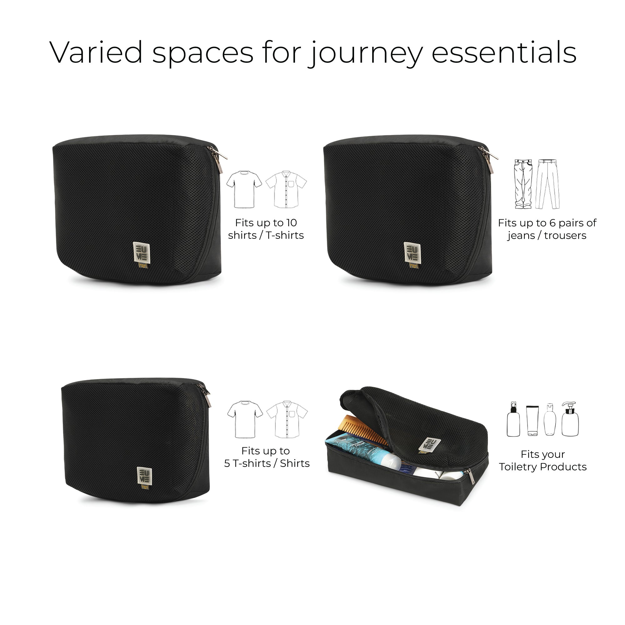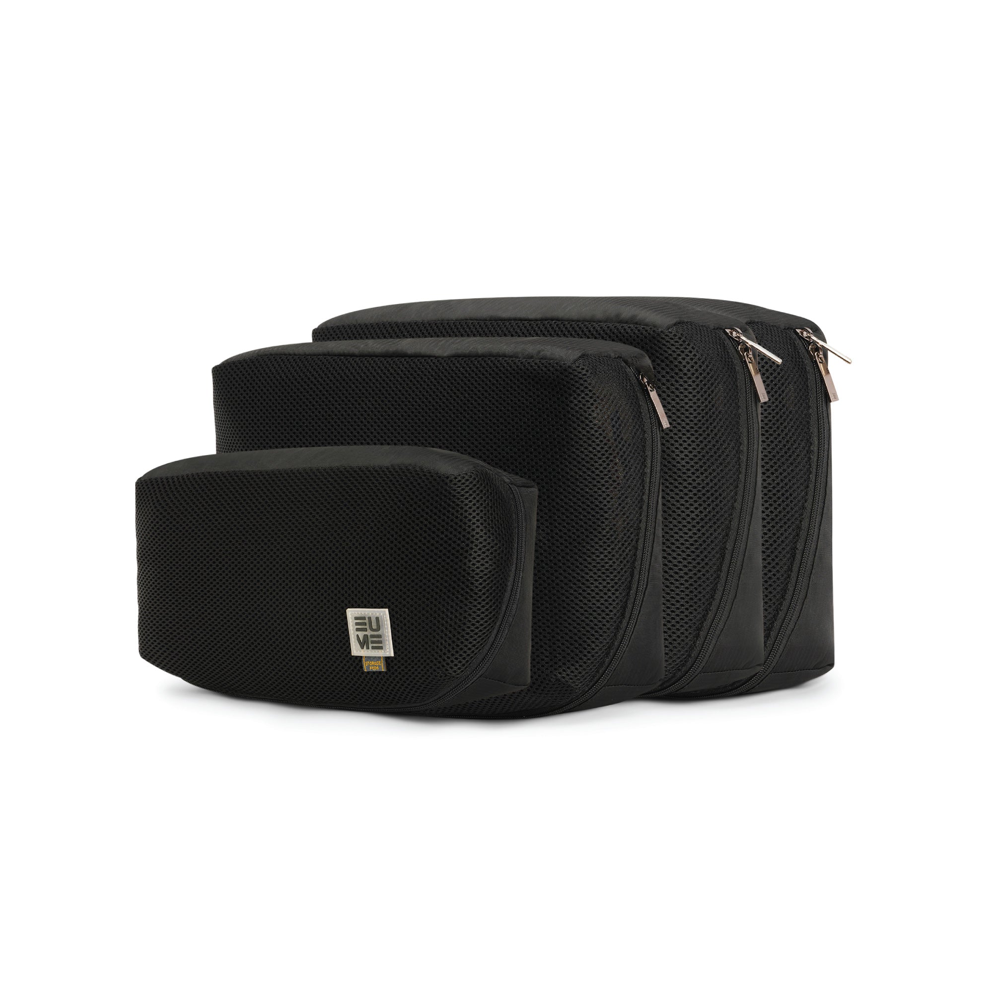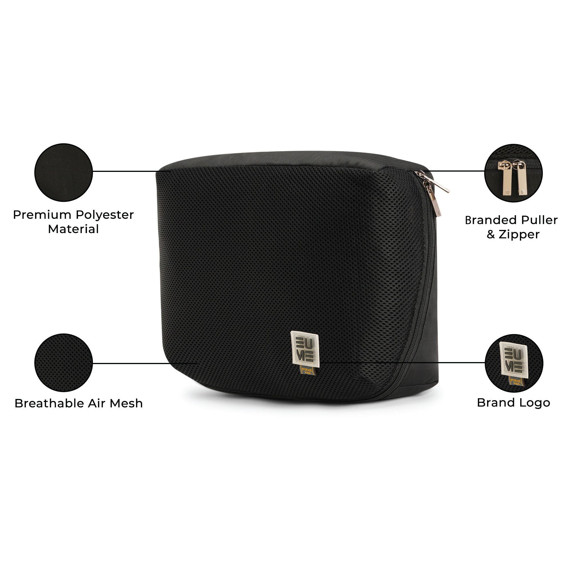 HIGH QUALITY MATERIAL - Eume storage pods are crafted from premium polyester and have a two-way zip closure for xlarge pod and one- way zip closure for large and medium pods. The upper portion of the Eume storage pods is made of extremely breathable honeycomb mesh fabric for maximum breathability.