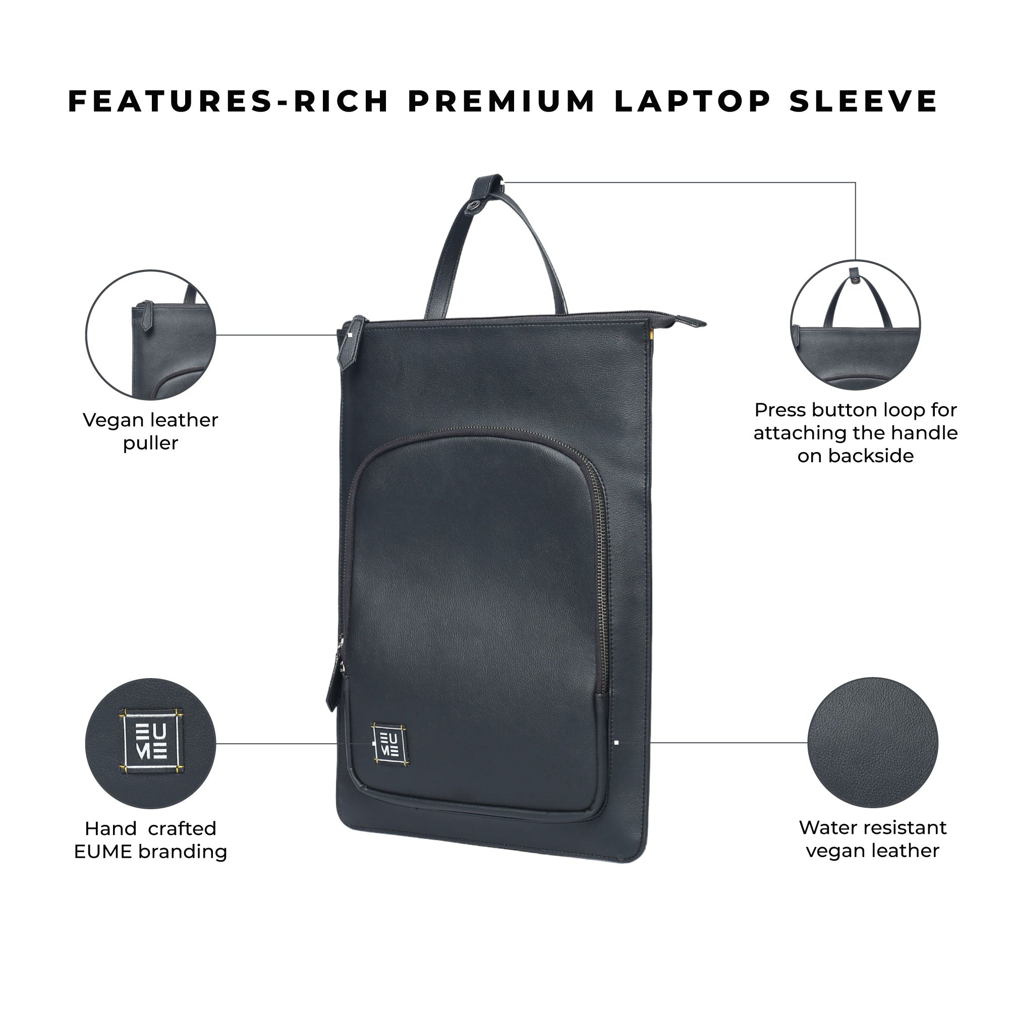 We are delighted to introduce the Eume Tech Case, meticulously crafted from premium vegan leather, offering superior protection for laptops up to 15.6 inches.