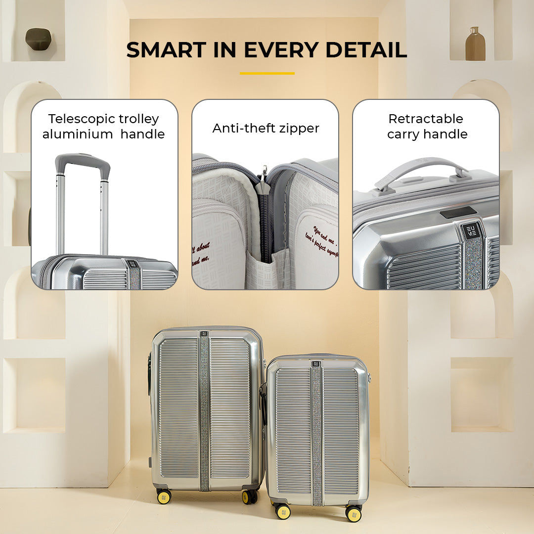- Designed for the modern bride, this collection features an anti-theft and expandable zipper, providing security for all your wedding essentials while allowing for those last-minute additions. The sturdy trolley and super-silent wheels ensure a smooth, effortless journey from one destination to the next.