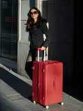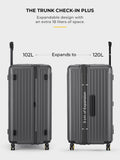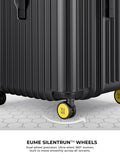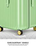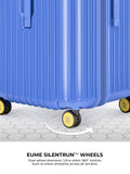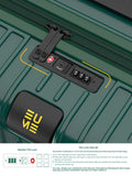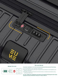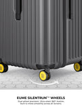 - The EUME Trunk Check-in Plus 26-inch trolley bag large size is meticulously crafted from 100% German Bayer Polycarbonate (PC), known for its durability and lightweight construction. Equipped with smooth EUME SilentRun 360-degree double wheels for stable steering, facilitated by ball-bearing mounted wheels with cushioned axles and TSA-approved locks, it offers secure and effortless travel, ideal for airline baggage inspections.