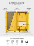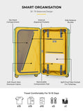 - Two pockets in the compression pad section are perfect for holding necessities like moisturizers, face wash, skincare products, combs, toiletries, lingerie, and socks. In order to hold clothing firmly in place, compression belts are also incorporated. In addition, our travel bag trolley has a telescopic trolley handle designed for smooth, stage-free adjustment, guaranteeing optimal comfort and easy mobility for a hassle-free travel experience.